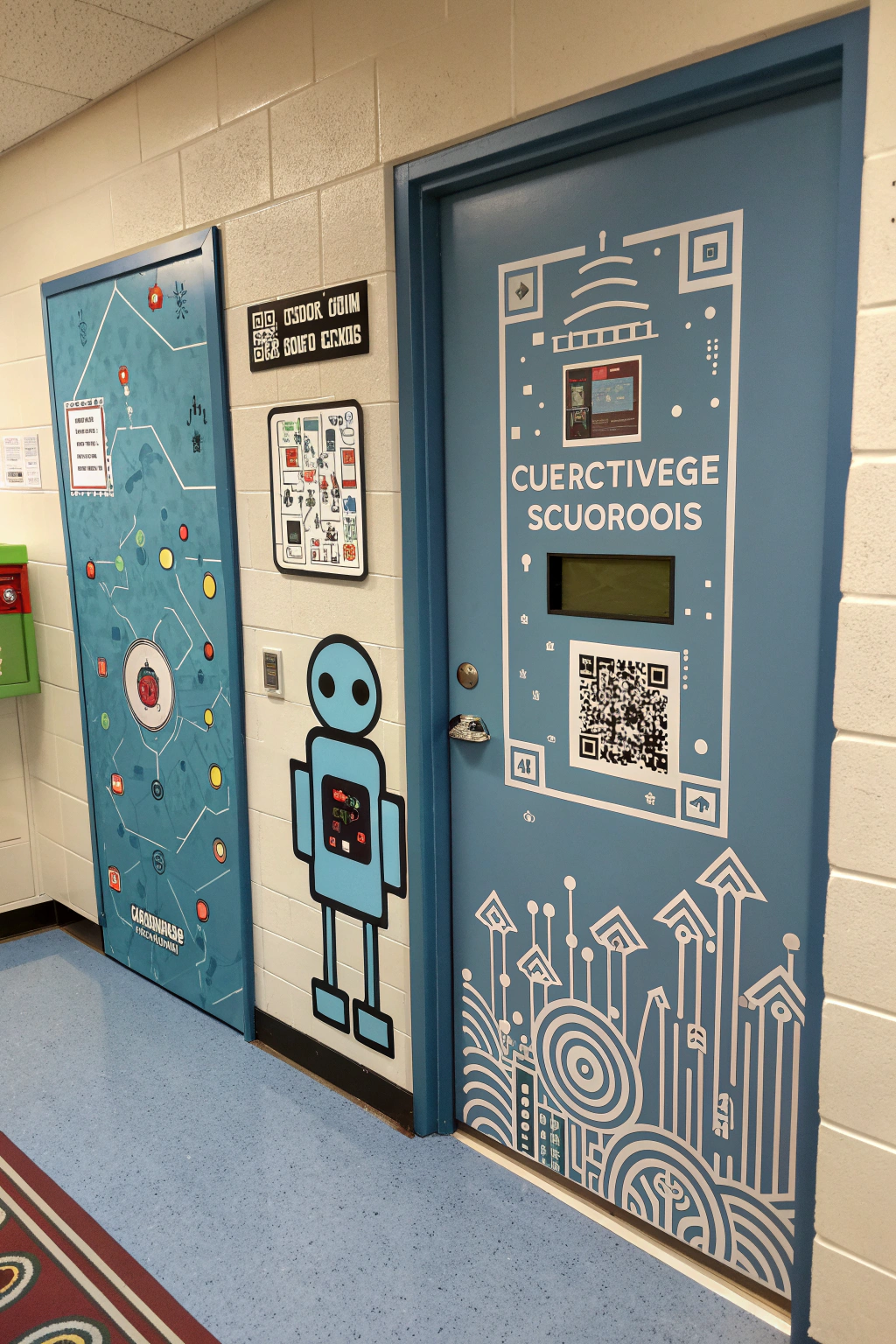 PinStep into the future by transforming your classroom door into a portal of technology and innovation. Use digital-themed designs like circuit patterns or pixel art. Incorporate QR codes leading to educational resources.
