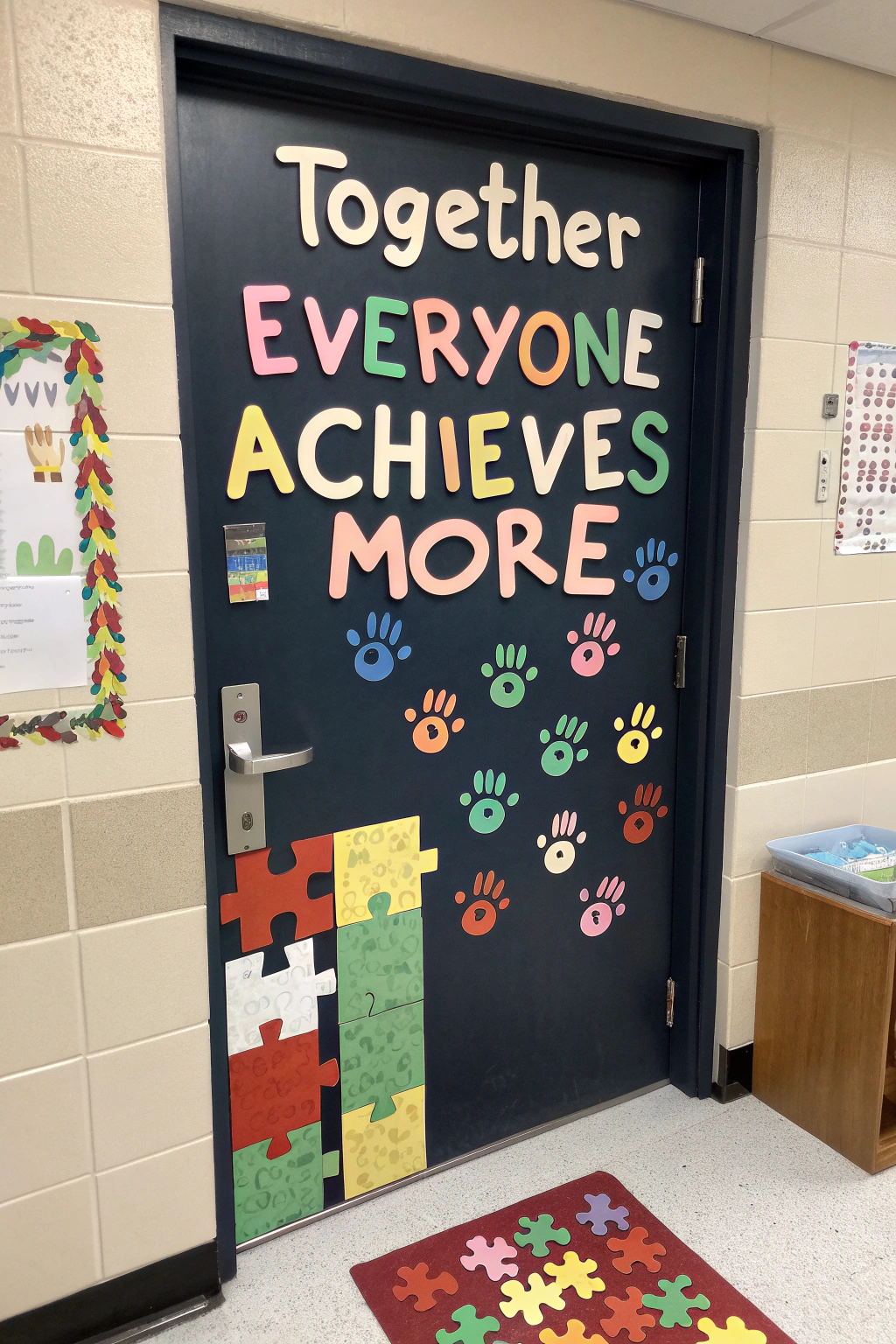 PinWhen you design your classroom door with teamwork and collaboration in mind, you create an inviting space that encourages students to work together. Use bold letters spelling out "Together Everyone Achieves More" and include handprints or puzzle pieces with each student's name. Incorporate interactive elements like a suggestion box for group projects. This decor fosters a sense of unity and promotes cooperative learning in your classroom.