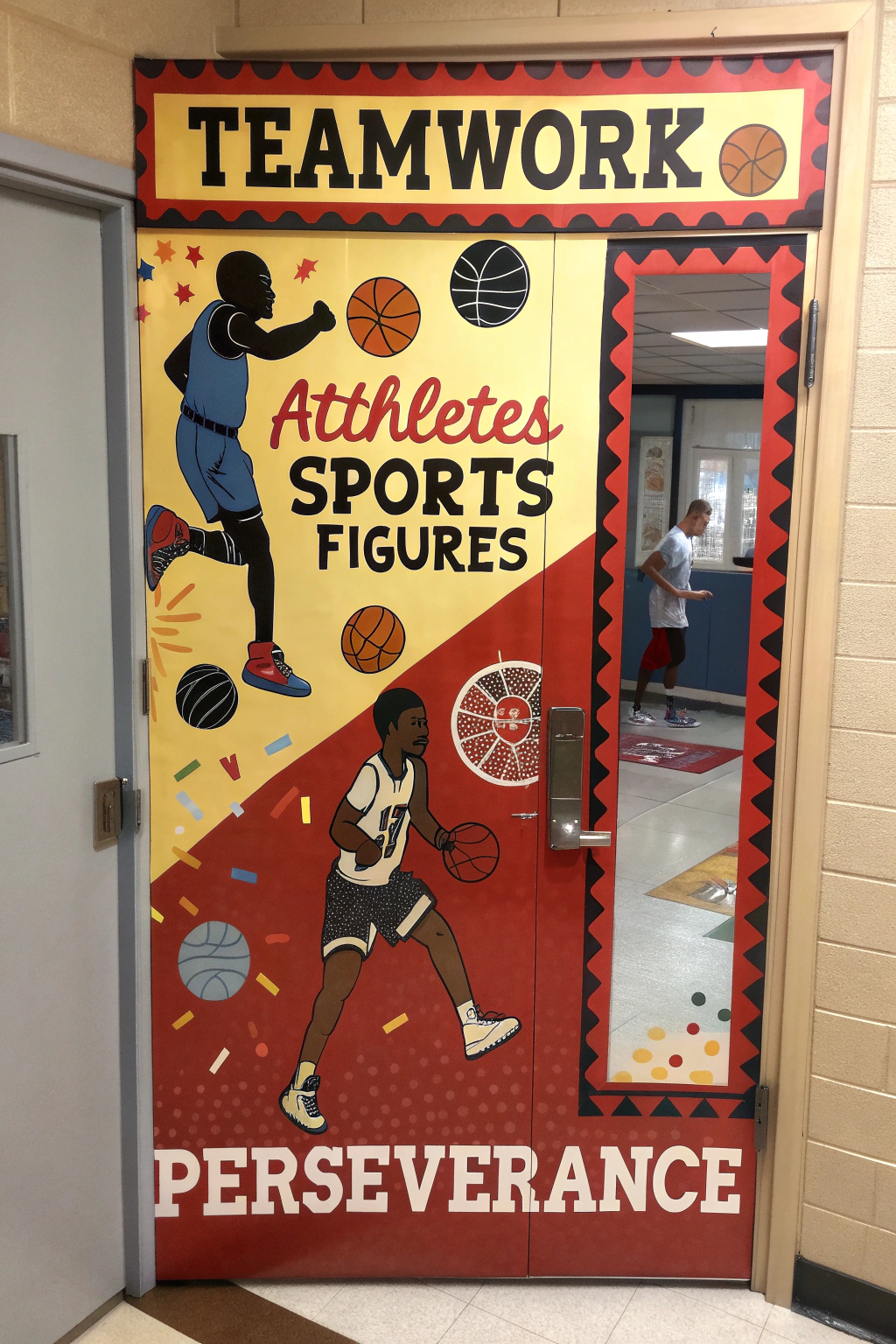 PinWhen you're looking to energize your classroom environment, sports and fitness themes can be a fantastic way to inspire students. Use bold colors and images of athletes in action to create a dynamic atmosphere. Incorporate motivational quotes from famous sports figures to encourage teamwork and perseverance. Add elements like mini basketball hoops or soccer balls to make the door interactive and engaging for your students.