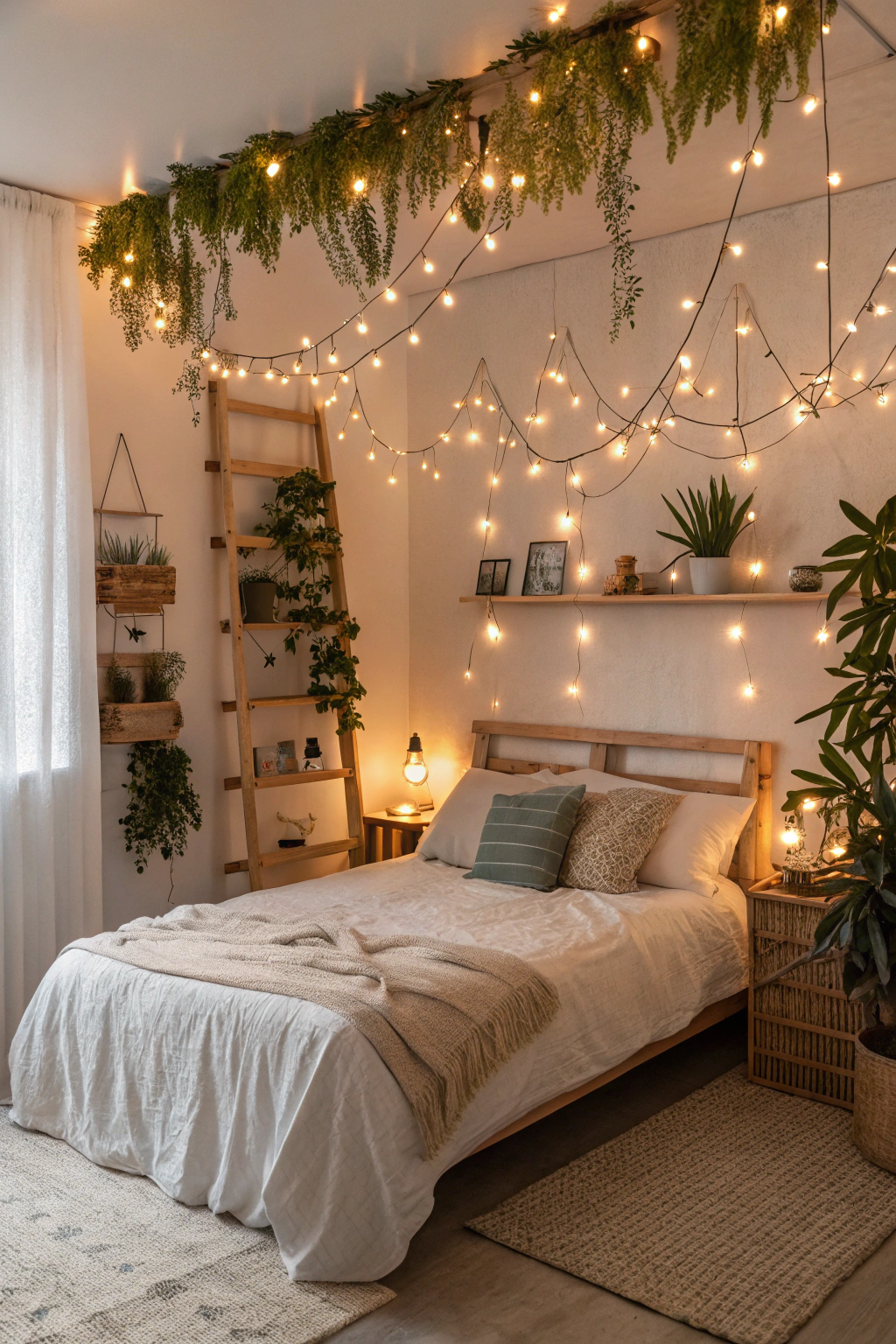 PinTransform your bedroom into a cozy retreat with string lights. Hang them around your bed frame or along the wall to create a warm, inviting atmosphere. You can drape them across shelves or weave them through plants for a whimsical touch. Choose soft white or warm-toned lights to enhance relaxation, and enjoy the magical glow as you unwind after a long day.