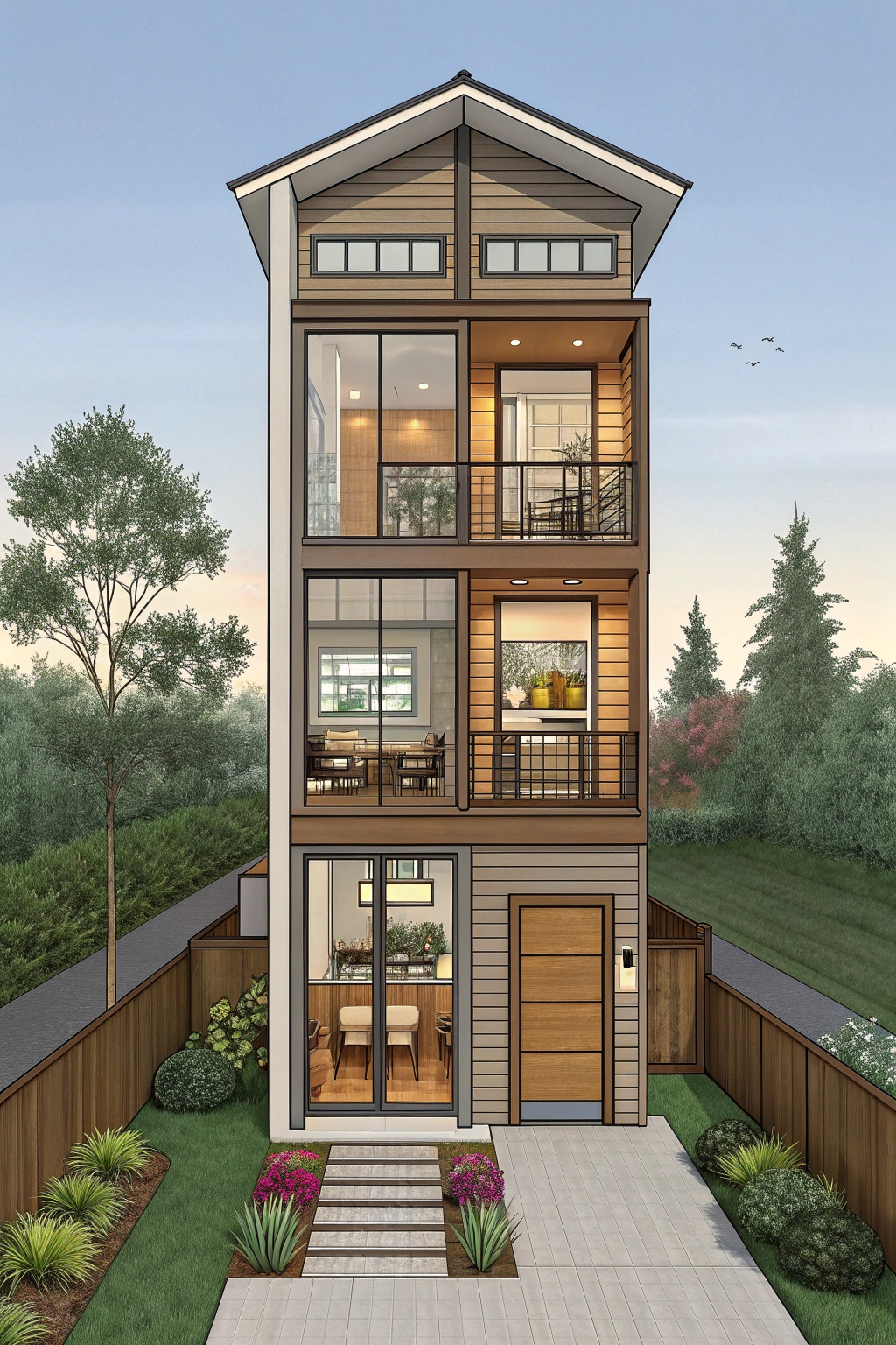PinFinding the right home design can be challenging, especially when dealing with limited space. For narrow lots, consider vertical designs that maximize height. Use long, narrow layouts to create an open feel. Incorporate large windows for natural light and utilize multi-functional spaces, like a combined living and dining area. You can also add outdoor elements to enhance your narrow lot's appeal.