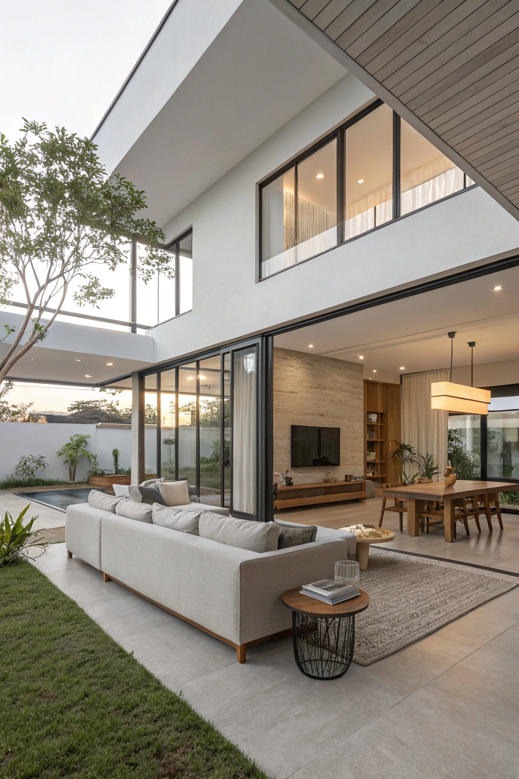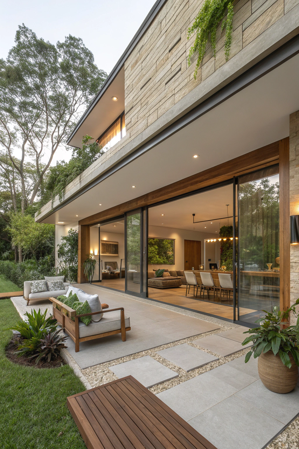 PinSeamless indoor-outdoor flow can transform your three-bedroom house into a serene retreat, enhancing both functionality and aesthetic appeal. Consider large sliding glass doors that open to a spacious patio, making passages effortless. Use natural materials like wood and stone to create a cohesive look. Incorporate comfortable furniture and lush greenery to invite the outdoors in, providing a perfect setting for relaxation and entertaining.