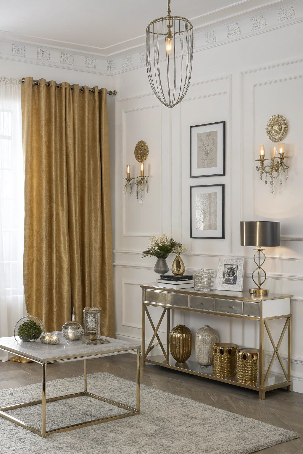 PinAdding a mix of white and metallic elements can elevate your living room design, creating an elegant and polished look. Incorporate metallic accents through light fixtures, picture frames, or decorative objects. Consider a metallic coffee table or gold-toned curtains to add visual interest. This modern contrast between the crisp white and shimmering metallics will enhance the sophistication of your space, making it feel inviting and stylish.