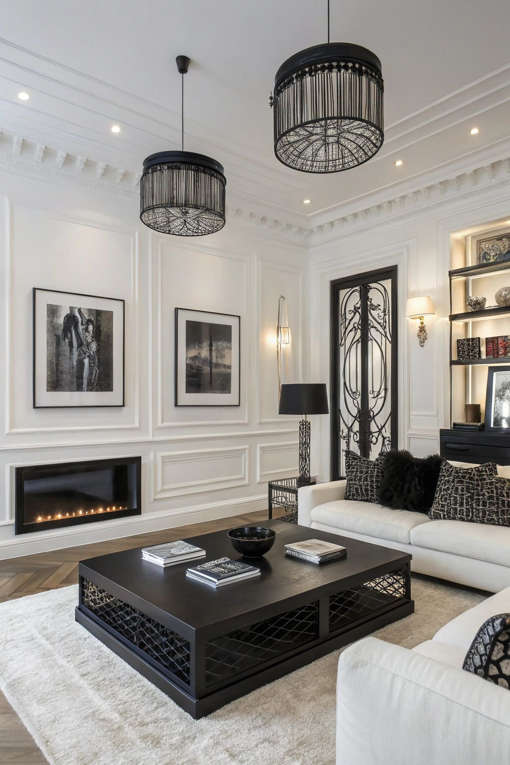 PinContrast brings energy and sophistication to your white living room, and bold black accents can make a striking statement. To effectively incorporate black contrasts, consider these elements: