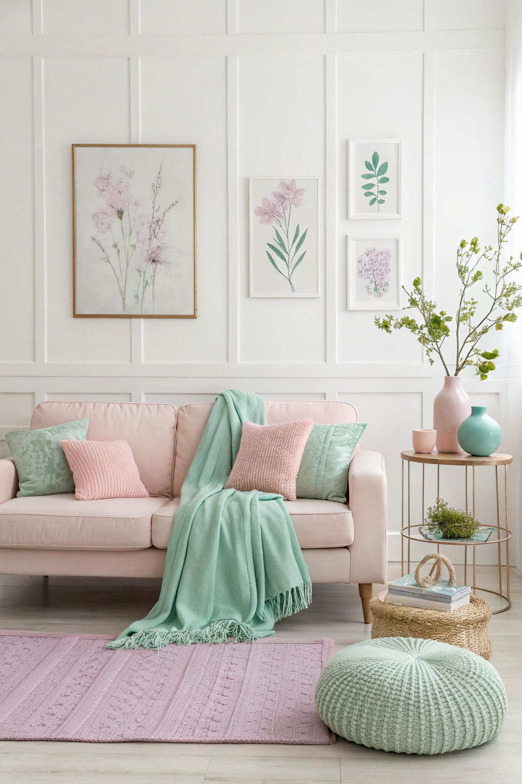 PinFor a serene and inviting atmosphere, soft pastel decorations will beautifully complement a white living room. Incorporate blush pink cushions, mint green throws, or light lavender artwork to add gentle color without overwhelming the space. Using pastel vases or soft-hued rugs can enhance the cozy feel. These colors bring warmth, perfectly balancing the clean, minimalist look of your white decor.