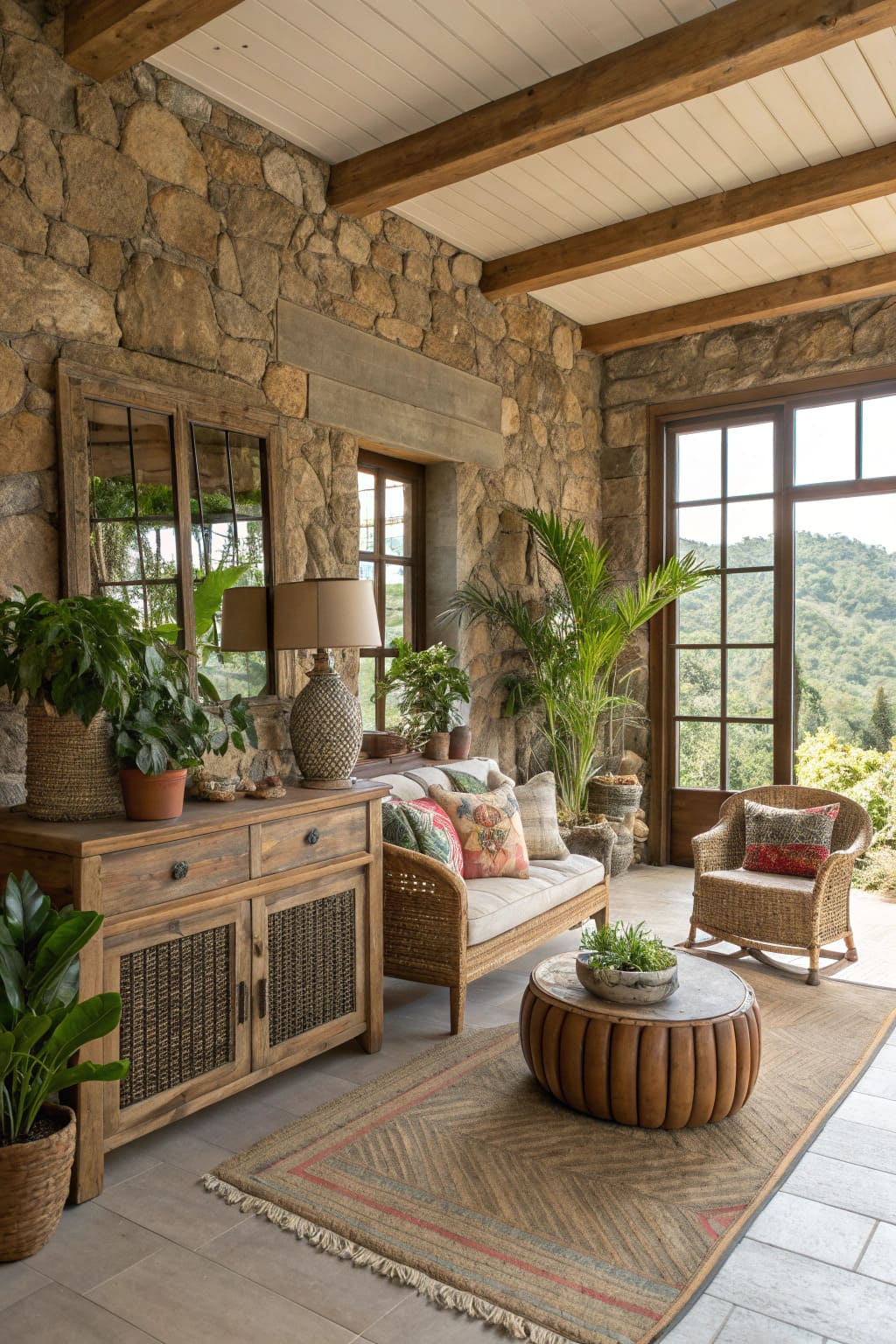 PinHow can you bring the beauty of the outdoors inside your home? Start by incorporating natural materials like wood and stone in furniture and decor. Add indoor plants to create a fresh, vibrant atmosphere. Use earthy color palettes for textiles and accents. Consider large windows or mirrors to reflect natural light. This approach connects your living space with nature, enhancing tranquility and warmth.