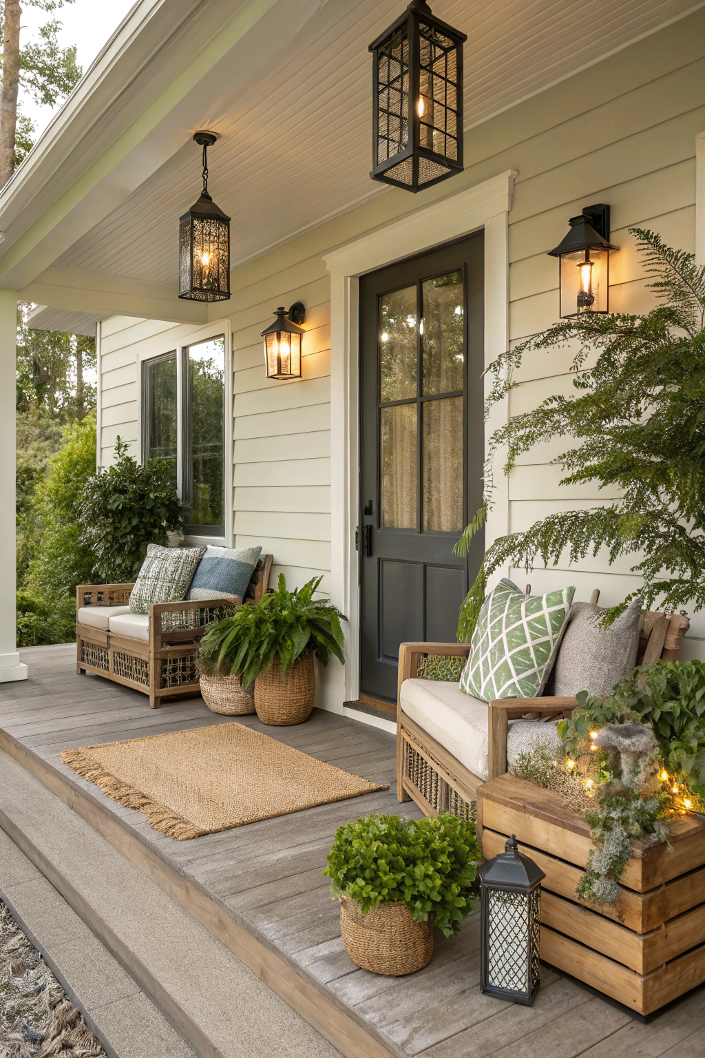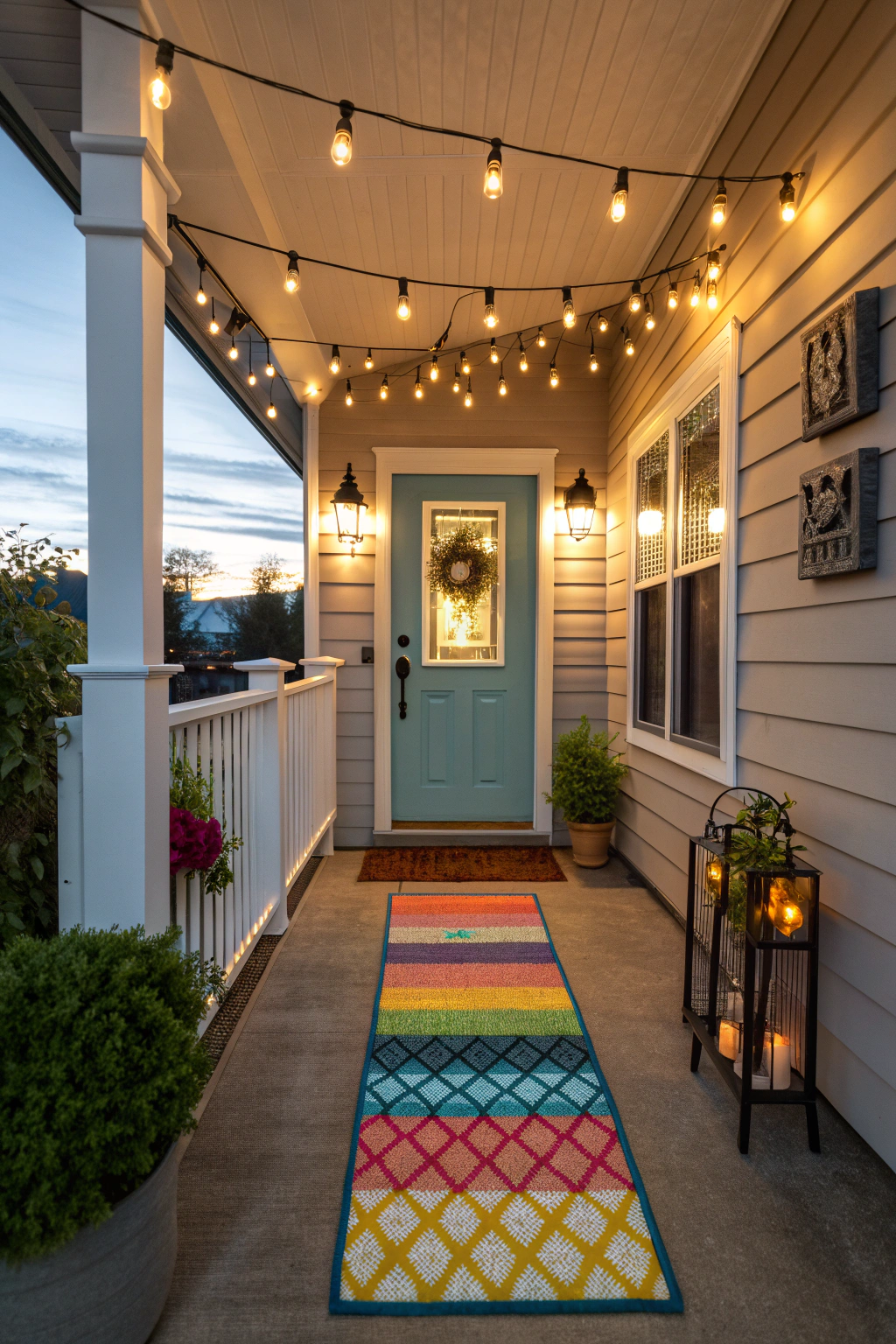 PinSetting a cheerful tone with a colorful welcome mat is just the beginning of creating an inviting front porch. Consider hanging string lights or lanterns for a cozy glow in the evening. Solar path lights can highlight your walkway, while decorative sconces bring style and ambiance to your entrance. With these creative lighting solutions, your porch will feel warm and welcoming day or night.