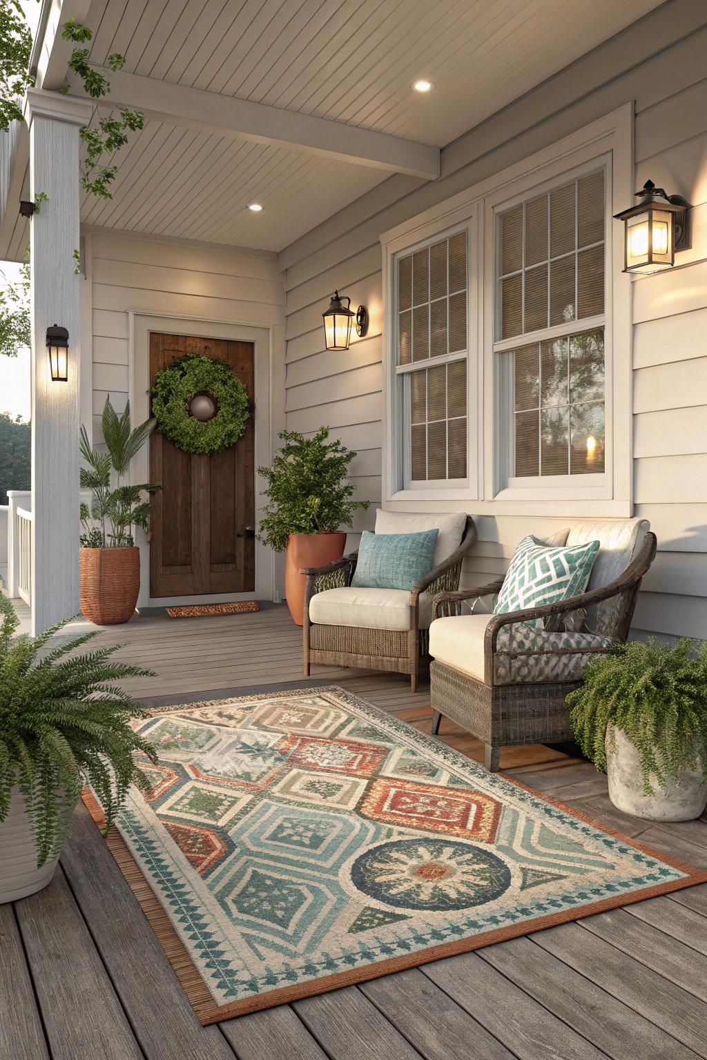 PinTo create a cozy and inviting atmosphere on your front porch, consider adding outdoor rugs that combine comfort and style. These rugs can enhance your space and provide a soft landing for your feet. Here are four elements to think about when choosing your outdoor rug: