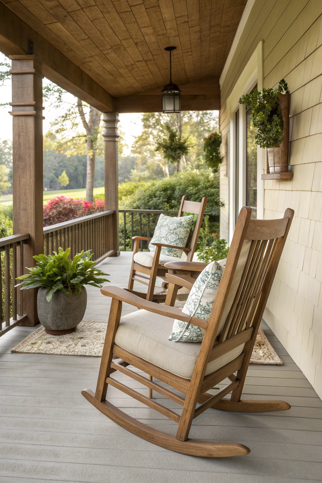 PinTransforming your front porch can be as simple as incorporating rustic rocking chairs. These timeless pieces add charm and comfort to your outdoor space. Choose high-quality wood for durability and finish with a weather-resistant coating. Position them to face your garden or street for a cozy spot to relax. Add soft cushions for extra comfort, making it the perfect place to unwind.