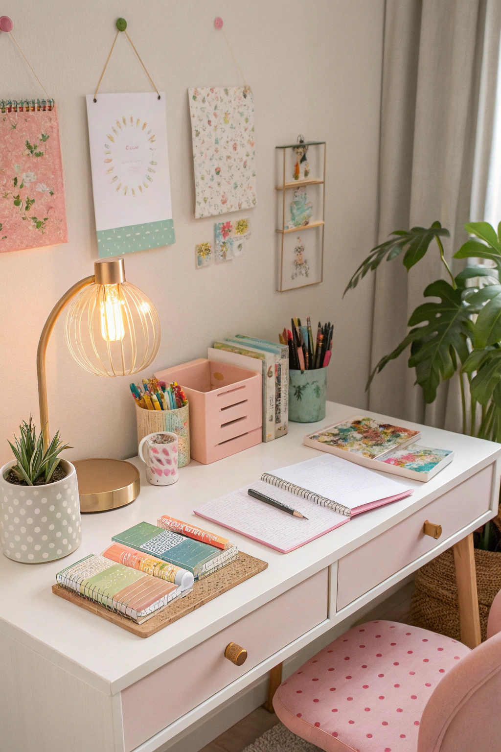 PinA cozy girly room isn't complete without cute desk accessories that reflect your personality while keeping your workspace organized. Choose fun pens and colorful notebooks to inspire creativity. Incorporate stylish desk organizers to keep everything in place, and add a chic lamp for a warm glow. Don't forget a cute plant or photo to personalize your space, making it truly yours.