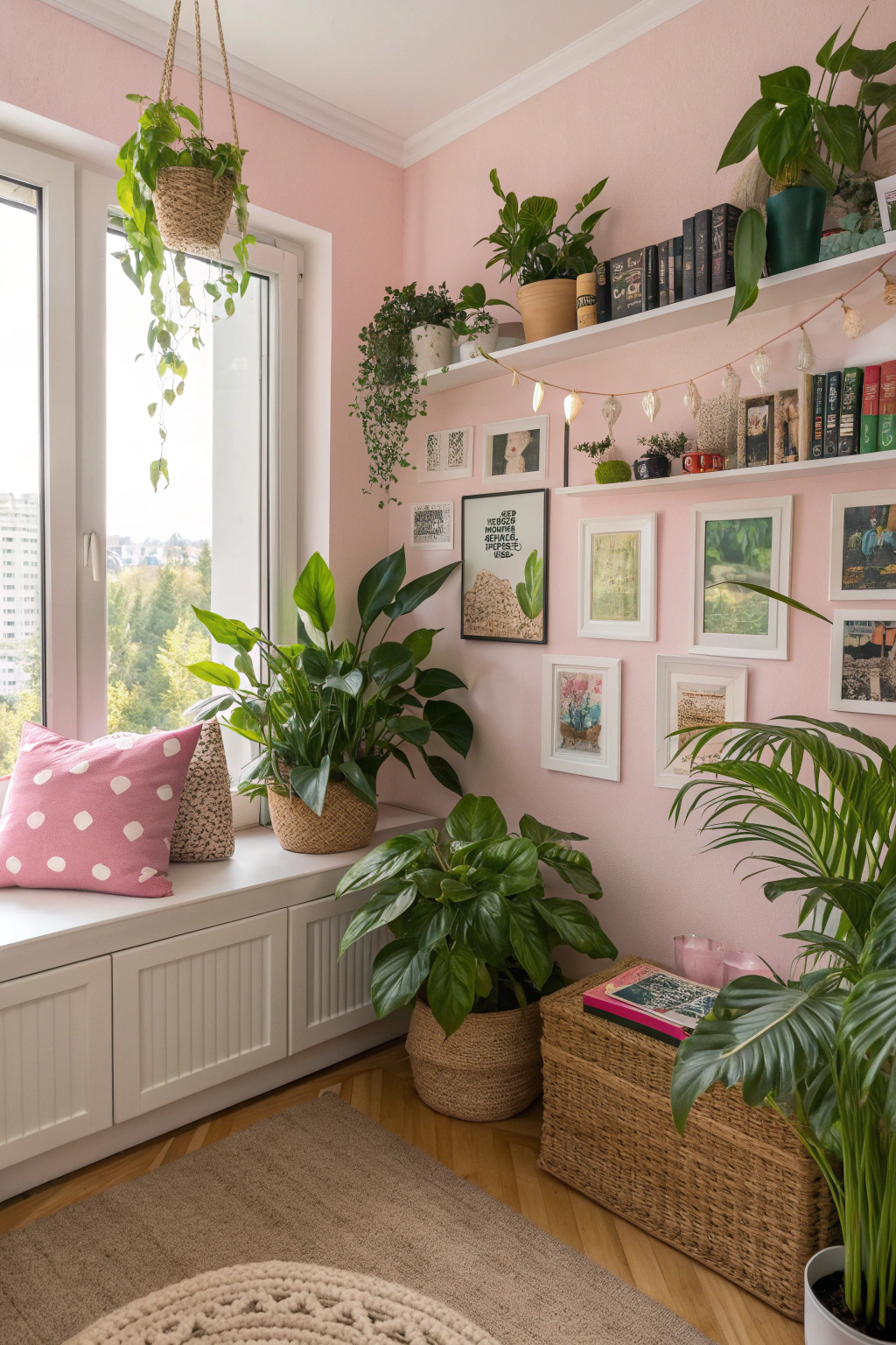 PinIncorporating lush indoor plants can elevate the ambiance of your girly room and complement your personalized photo gallery. Choose vibrant options like pothos or peace lilies for easy care and stunning aesthetics. Position them on shelves, windowsills, or hanging planters to create depth. The greenery not only enhances your decor but also purifies the air, making your space feel fresh and inviting.