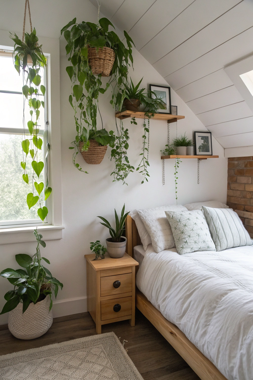 PinIncorporating plants into your small bedroom can instantly bring freshness and life to the space. Opt for easy-to-care-for varieties like pothos or snake plants that thrive in low light. Use wall-mounted planters or small pots on your window sill to save floor space. Not only do they enhance the dΓ©cor, but they also improve air quality, making your sleep environment healthier.
