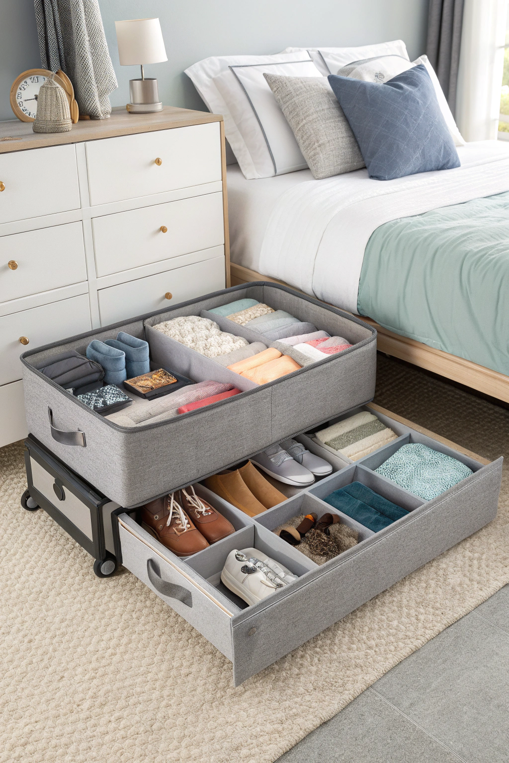 PinUnder-bed storage is a practical solution for maximizing space in a small bedroom. It helps you declutter and makes your room look organized. Consider these storage ideas: