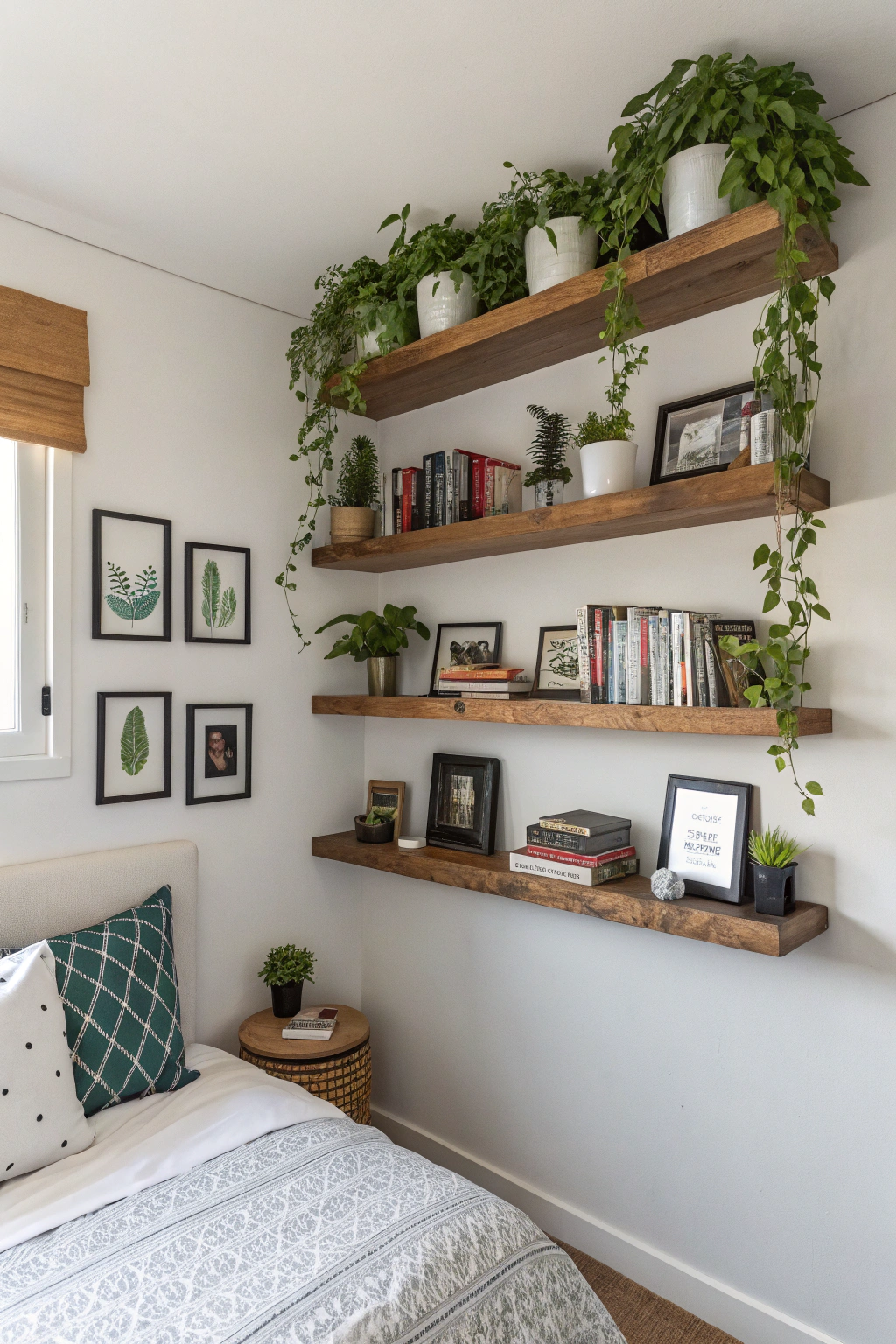 PinWall-mounted shelves are a fantastic solution for maximizing vertical space in small bedrooms. They not only add storage but also style to your room. Consider incorporating: