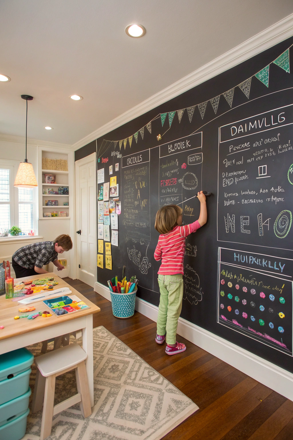 PinChalkboard walls can turn any space into a playful and interactive area, perfect for families and creatives alike. You can easily transform a section of your wall with chalkboard paint, allowing for endless doodling, notes, or important reminders. Kids can express their creativity, while adults can keep organized. Just grab some chalk and let your imagination run wild!