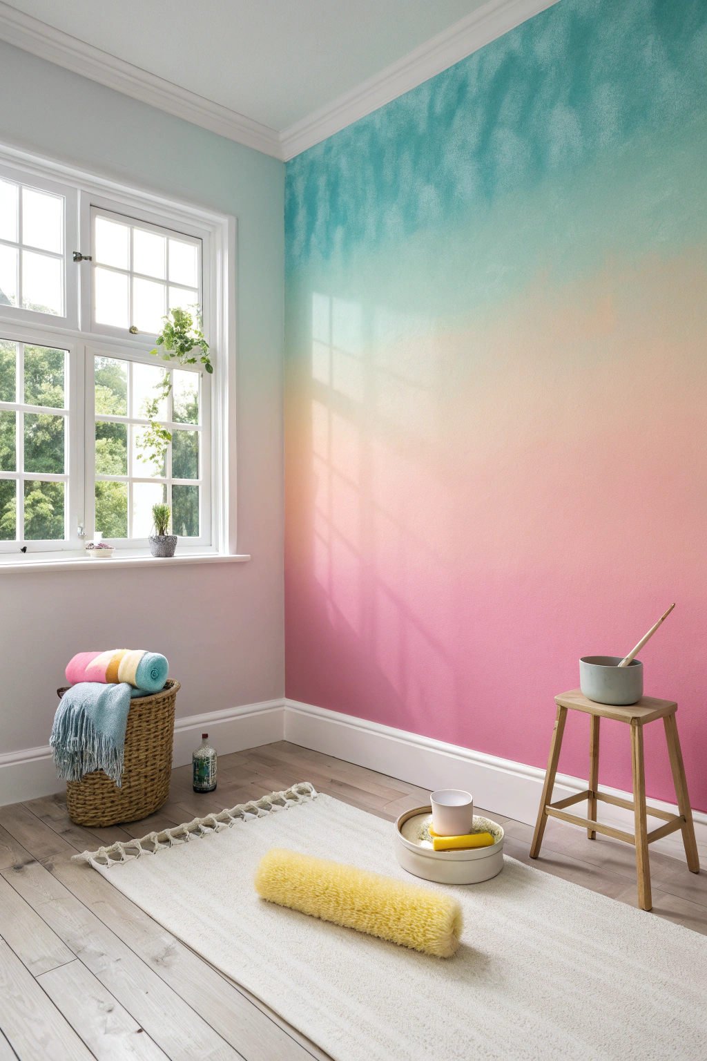 PinCreating stunning ombre effects on your walls can transform a simple room into an enchanting space. Start by selecting two or three colors that blend well together. You'll want to use a sponge or brush to fade the colors seamlessly from one to another. Apply varying pressures while painting to achieve that desired gradient. Don't rush—patience will guarantee a smooth, eye-catching finish.