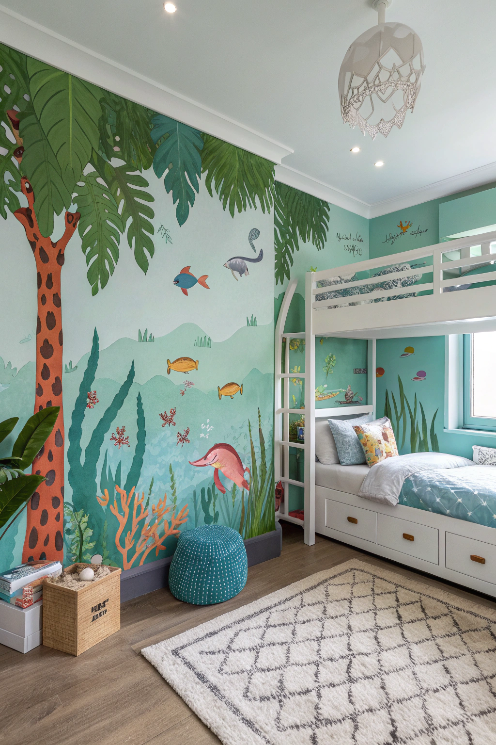 PinWhen it comes to designing a kids' room, imagination knows no bounds. You can create a whimsical jungle with vibrant greens and playful animal murals, or transform the space into a magical underwater world with blues and colorful fish. Consider involving your kids by letting them choose their favorite colors and themes, ensuring their room reflects their personality and sparks joy every day.