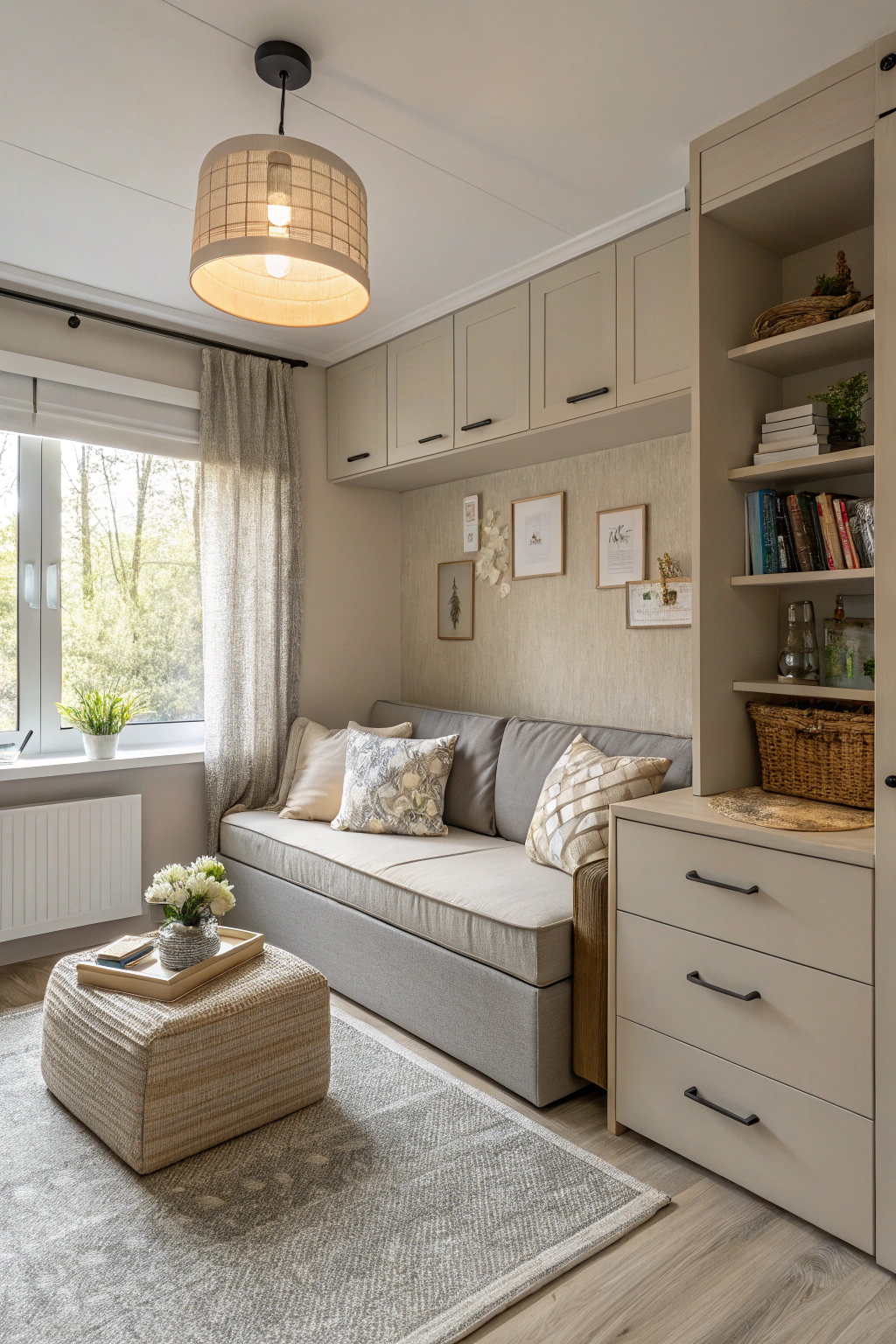 PinOne of the best ways to maximize space in a tiny living room is by using multi-functional furniture. Opt for a sofa bed that converts into a comfortable guest space. Consider coffee tables with storage underneath and ottomans that double as seating. By choosing pieces that serve multiple purposes, you'll keep your living area organized and functional without sacrificing style.