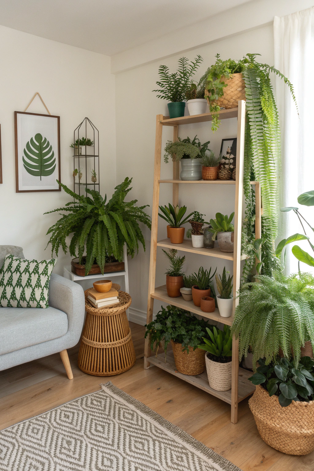PinTo instantly brighten up your tiny living room, adding plants can make a world of difference. Choose easy-care varieties like succulents or ferns to liven up the space. Grouping plants together creates a vibrant display, while placing them on shelves or small stands draws the eye upward, making the room feel taller. A splash of greenery brings warmth and life to your cozy area.