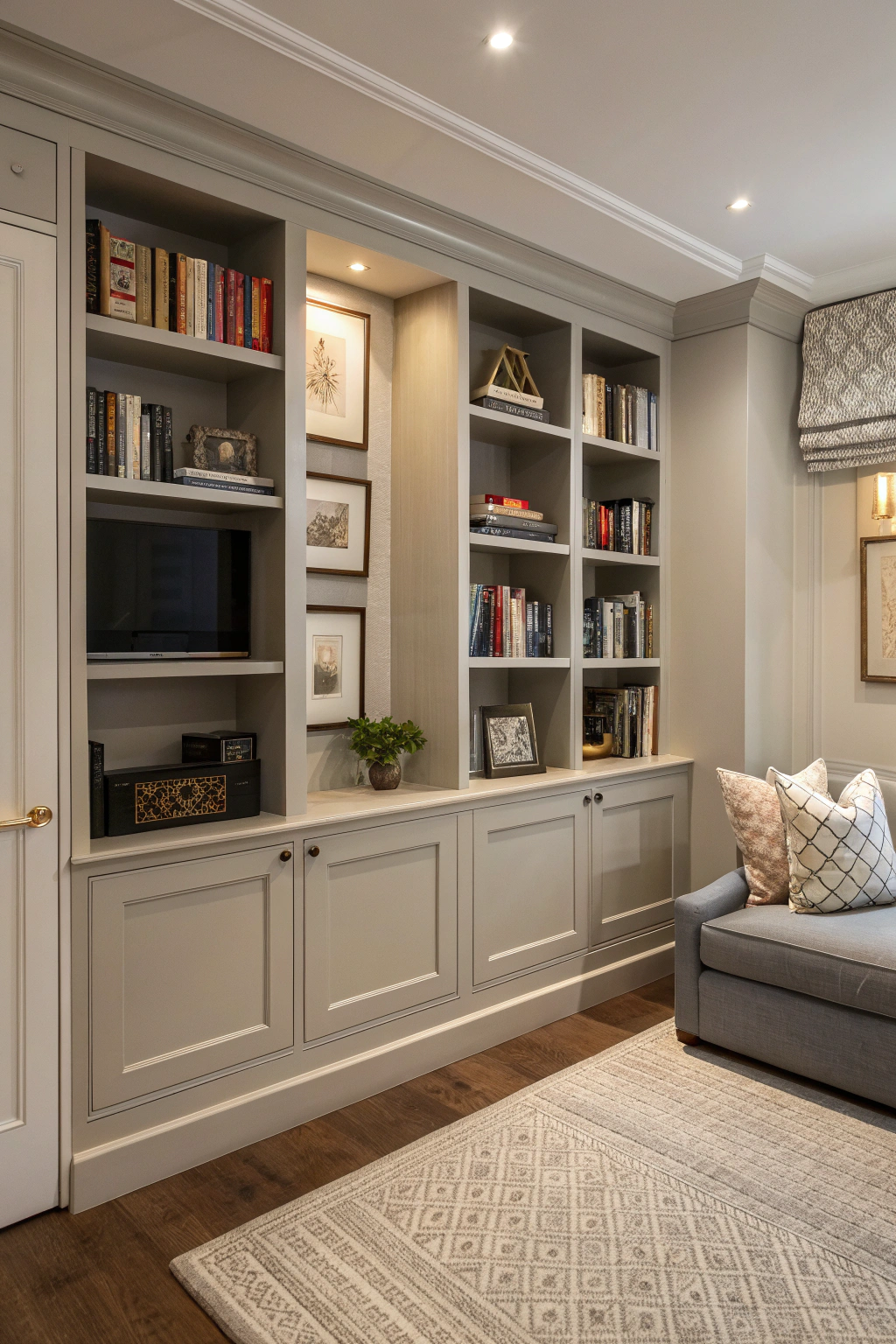 PinWhen you're looking to maximize space in a tiny living room, built-in cabinets offer a sleek and efficient storage solution. They blend seamlessly with your walls, freeing up floor space while providing ample storage for books, decor, and necessities. You can customize their design to fit your style, ensuring they not only enhance organization but also add a stylish touch to your space.