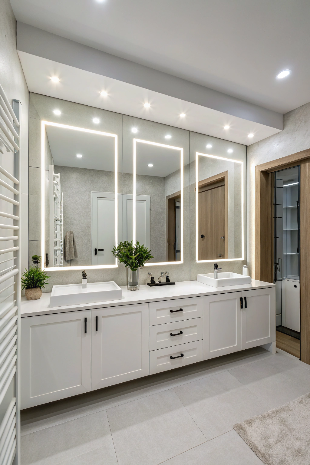 Position lights strategically around mirrors and cabinetry to enhance functionality while maintaining a clean, contemporary look. It's a simple upgrade with transformative results.