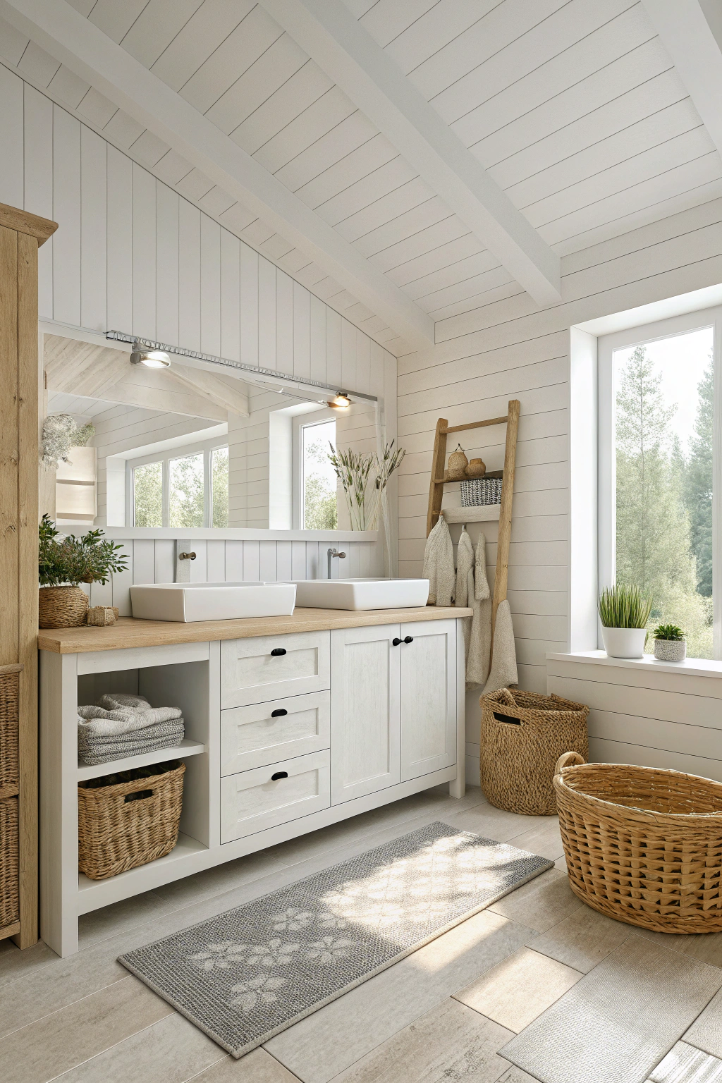 PinWhen you want to introduce a touch of rustic charm to your bathroom, white shiplap is an excellent choice. It adds texture and warmth, creating a cozy, inviting atmosphere. Install shiplap on walls or ceilings to highlight architectural features.