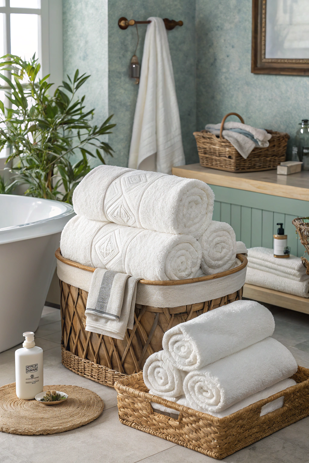 Choose high-quality cotton for superior softness and absorbency. Stack them neatly on your towel rack or roll them in a basket for a tidy look.