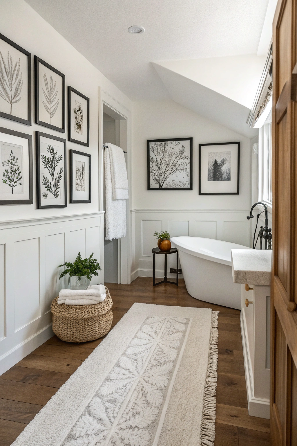 PinWhile a cozy white rug adds warmth to your bathroom, monochrome artwork can elevate the space's visual appeal. Choose black and white pieces that complement your existing decor.