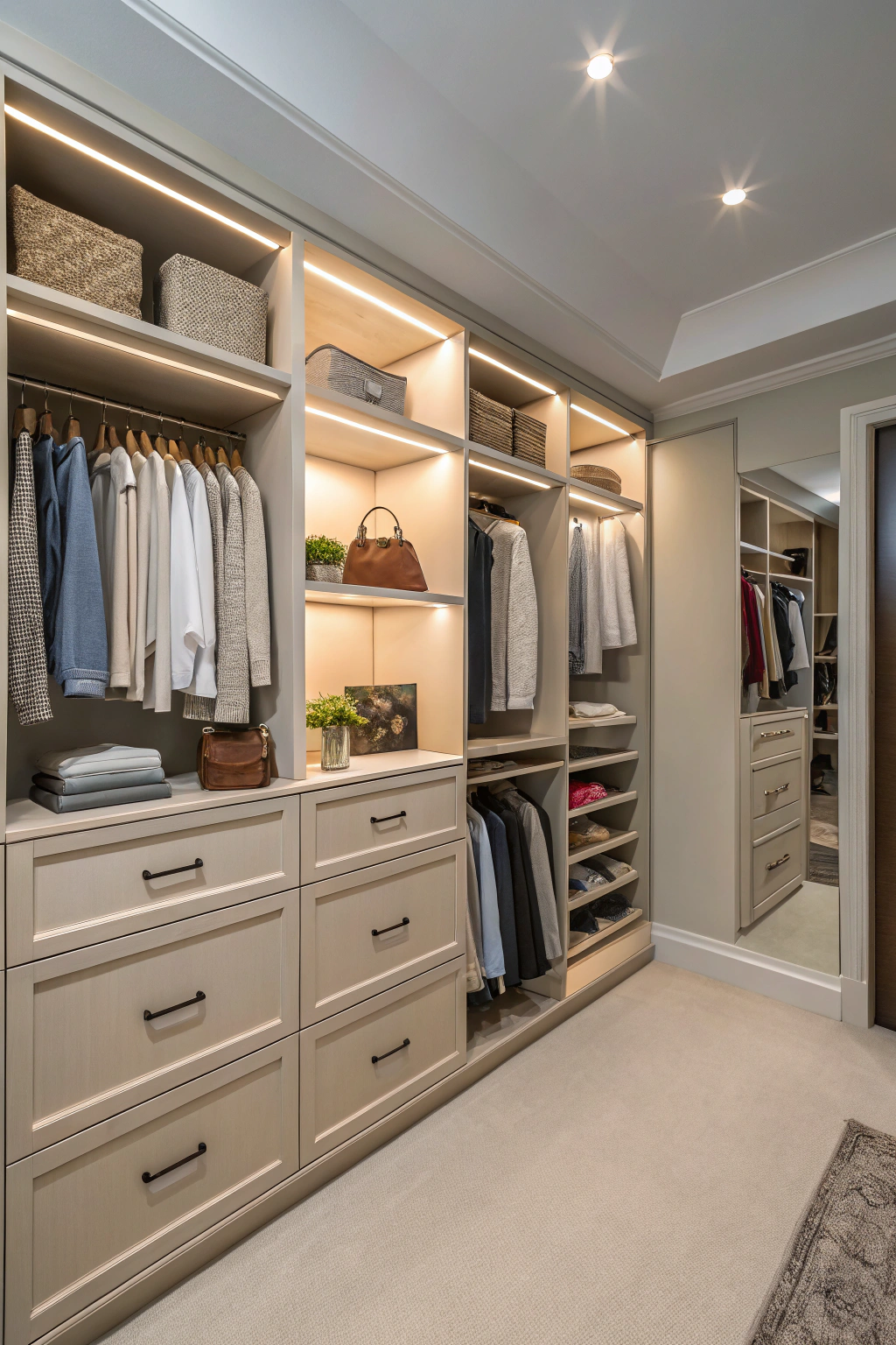 PinAfter exploring the allure of travel-inspired decor, it's time to focus on a key aspect of your personal space: the closet. Customized closet solutions can transform this area into an organized oasis. Incorporate shelving, hanging racks, and drawers tailored to your wardrobe. You'll maximize storage, streamline your daily routine, and guarantee everything's accessible, making your closet an efficient part of your sanctuary.
