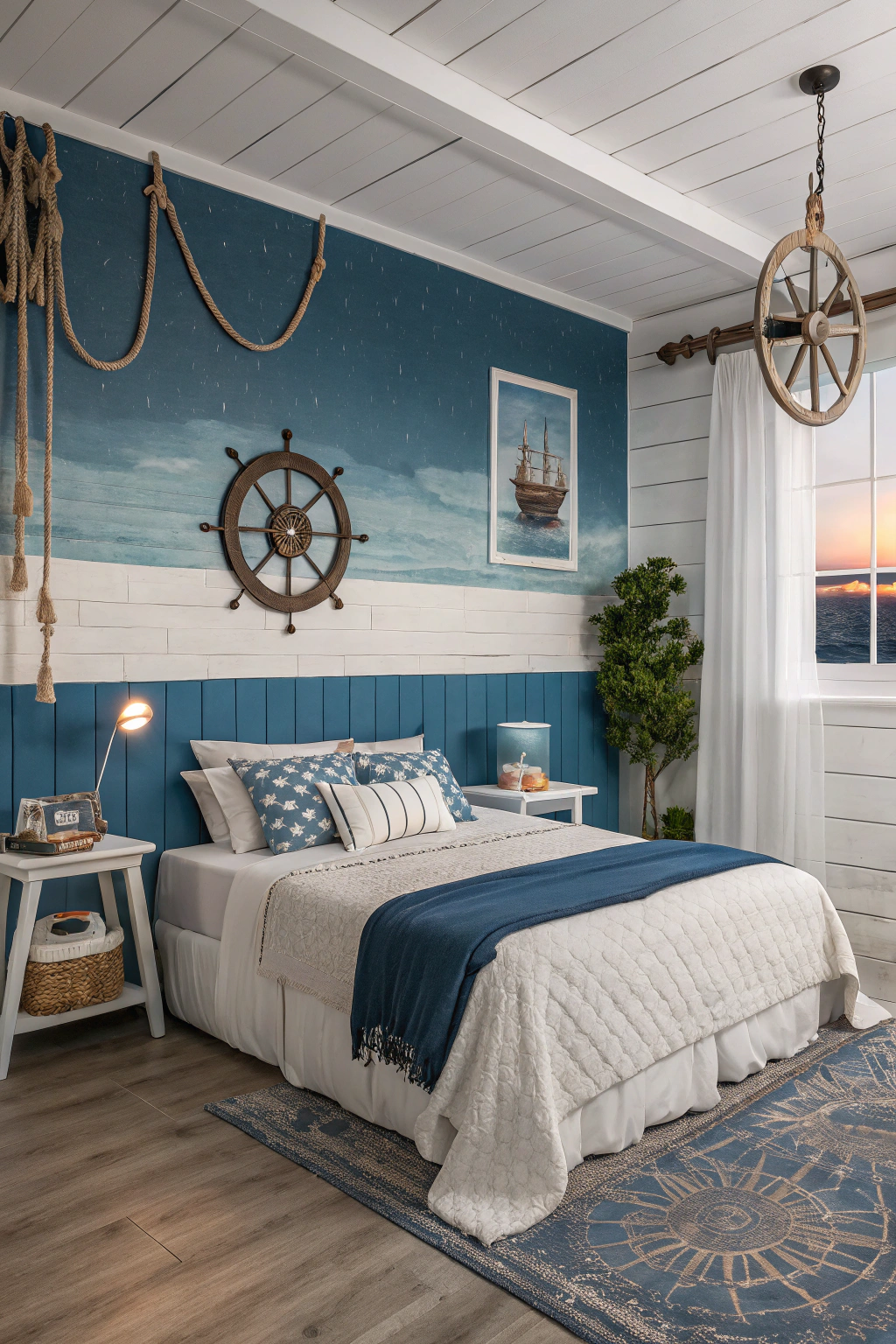 PinIf you're looking to evoke the tranquility of the ocean in your bedroom, a nautical theme is the perfect choice. Use deep blues and crisp whites to create a calming palette. Incorporate textured materials like linen and rope. Add coastal decor, such as ship wheels or anchors, for a cohesive look. Soft lighting mimics the glow of a sunset, enhancing relaxation.