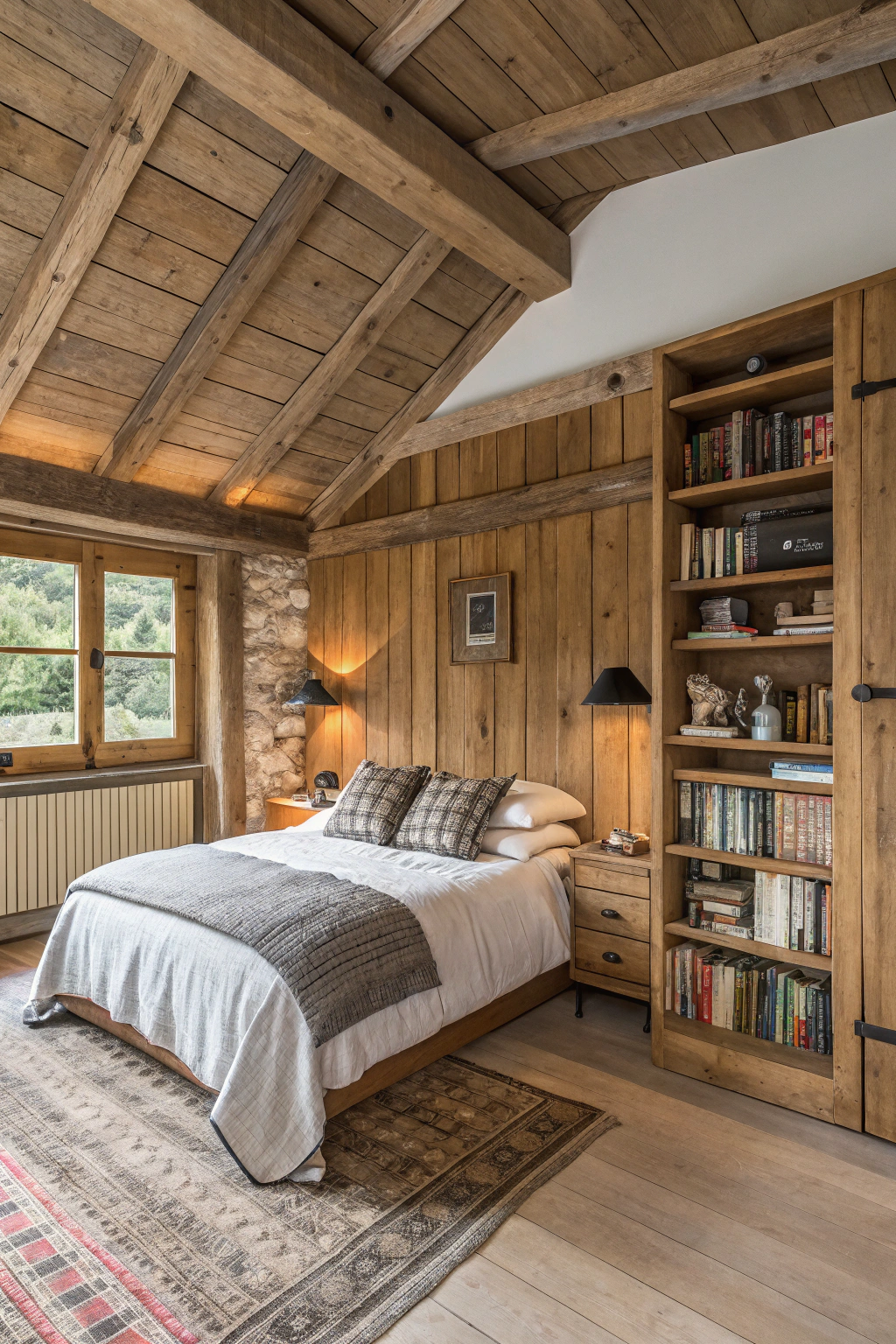 PinIncorporating rustic wood elements into your bedroom can add warmth and character, creating a cozy retreat that feels both inviting and stylish. Think reclaimed wooden furniture, exposed beams, or a wooden accent wall. You can also utilize wooden shelves for displaying books or personal items. Natural finishes and textures enhance your space, tying in earth tones that complement your overall design aesthetic.