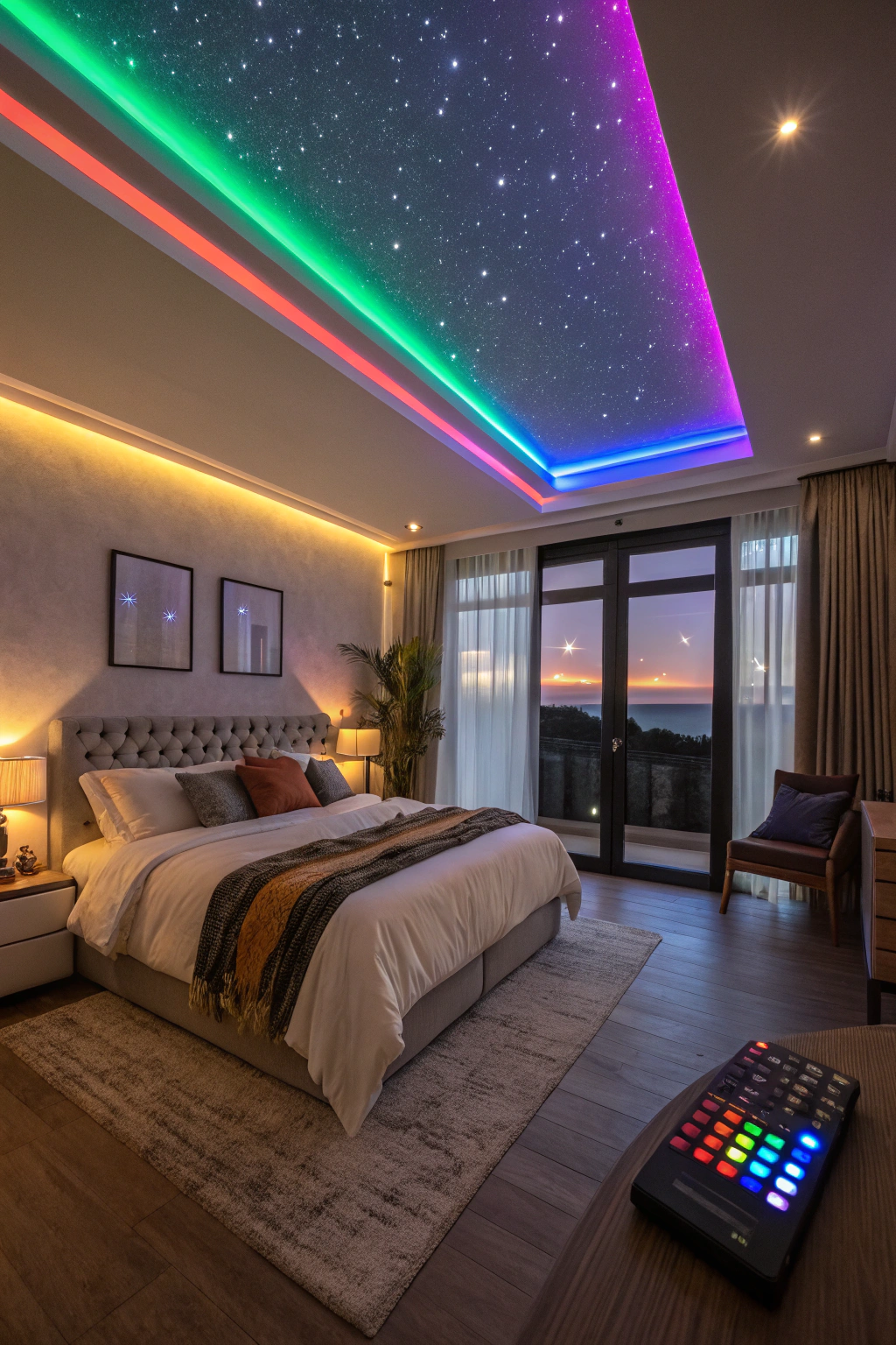 PinAdding colorful LED strip accents to your ceiling can instantly elevate the ambiance of your bedroom. These versatile lights create a warm, inviting space and enhance your decor. Here's how you can use them: