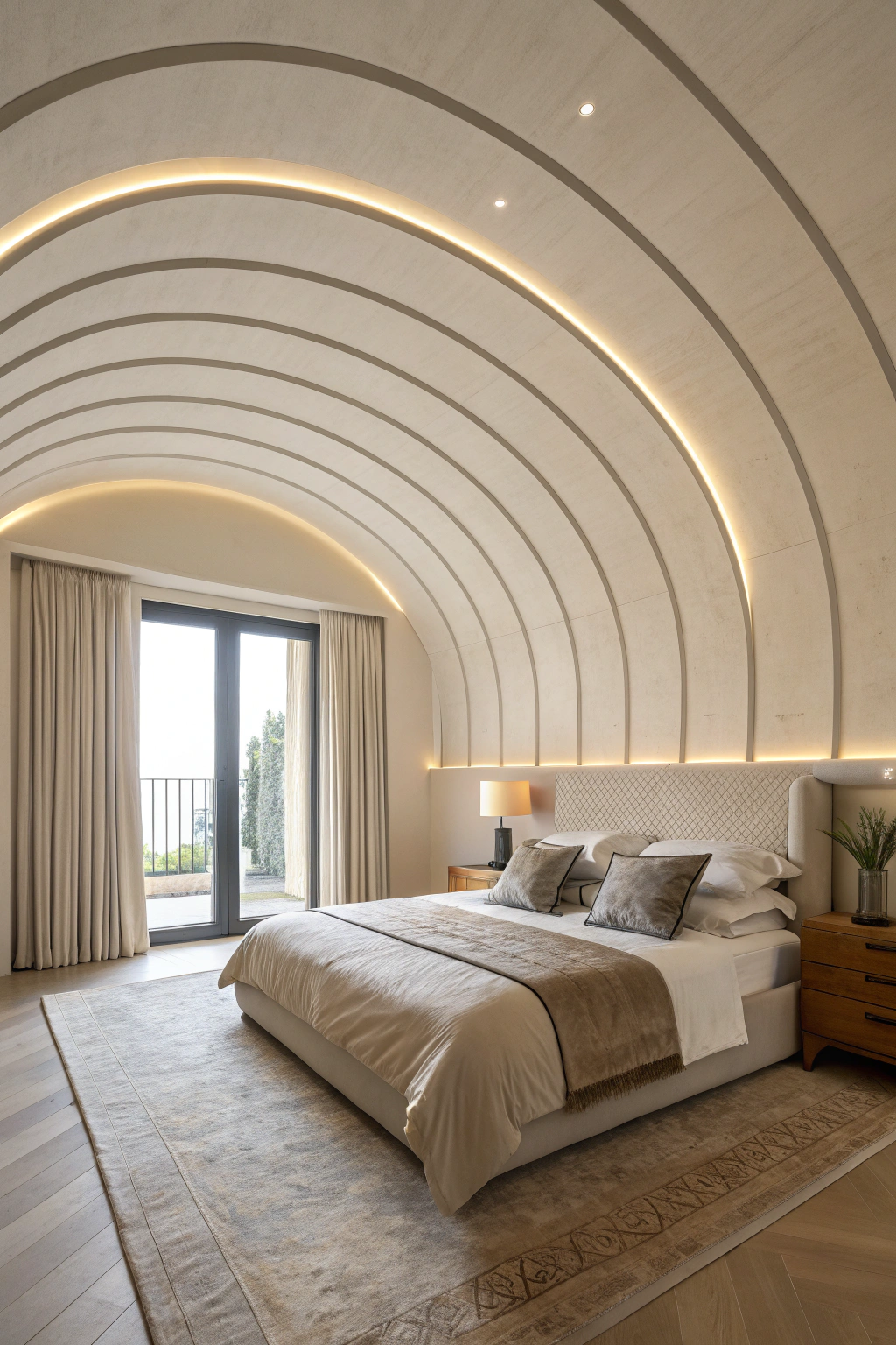 PinCurved ceiling edges create a seamless transformation between walls and ceilings, softening the overall look of your bedroom. They draw the eye upward and lend an airy feeling to the space. You can choose subtle curves for a minimalist effect or make bold statements with dramatic arcs. Whichever style you pick, curved edges can elevate your design and enhance your bedroom's ambiance.