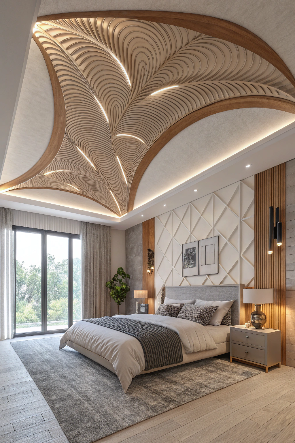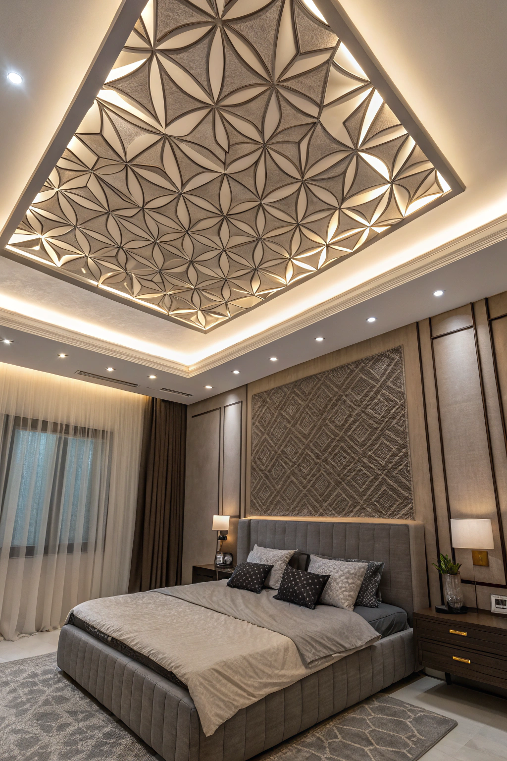 PinSculptural 3D shapes can elevate your bedroom's ceiling from simple to striking. You can choose flowing curves or angular designs to create visual interest. Consider incorporating materials like wood, metal, or molded plaster to enhance texture. These shapes add dimension and personality, transforming an ordinary ceiling into an art piece. Your ceiling can become a focal point that reflects your unique style.