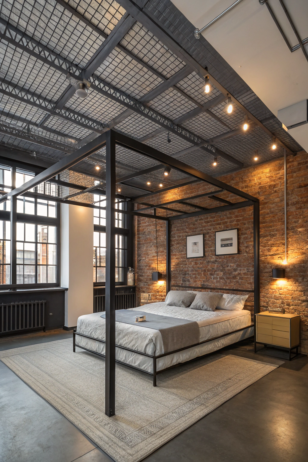 PinIntroducing an industrial metal framework in your bedroom can bring a bold and contemporary flair to your space. You can incorporate exposed metal beams or grid systems to create an eye-catching ceiling design. Pair it with minimalist decor and soft, warm lighting to balance the industrial feel. This striking combination not only enhances your room's aesthetic but also adds a unique character to your environment.