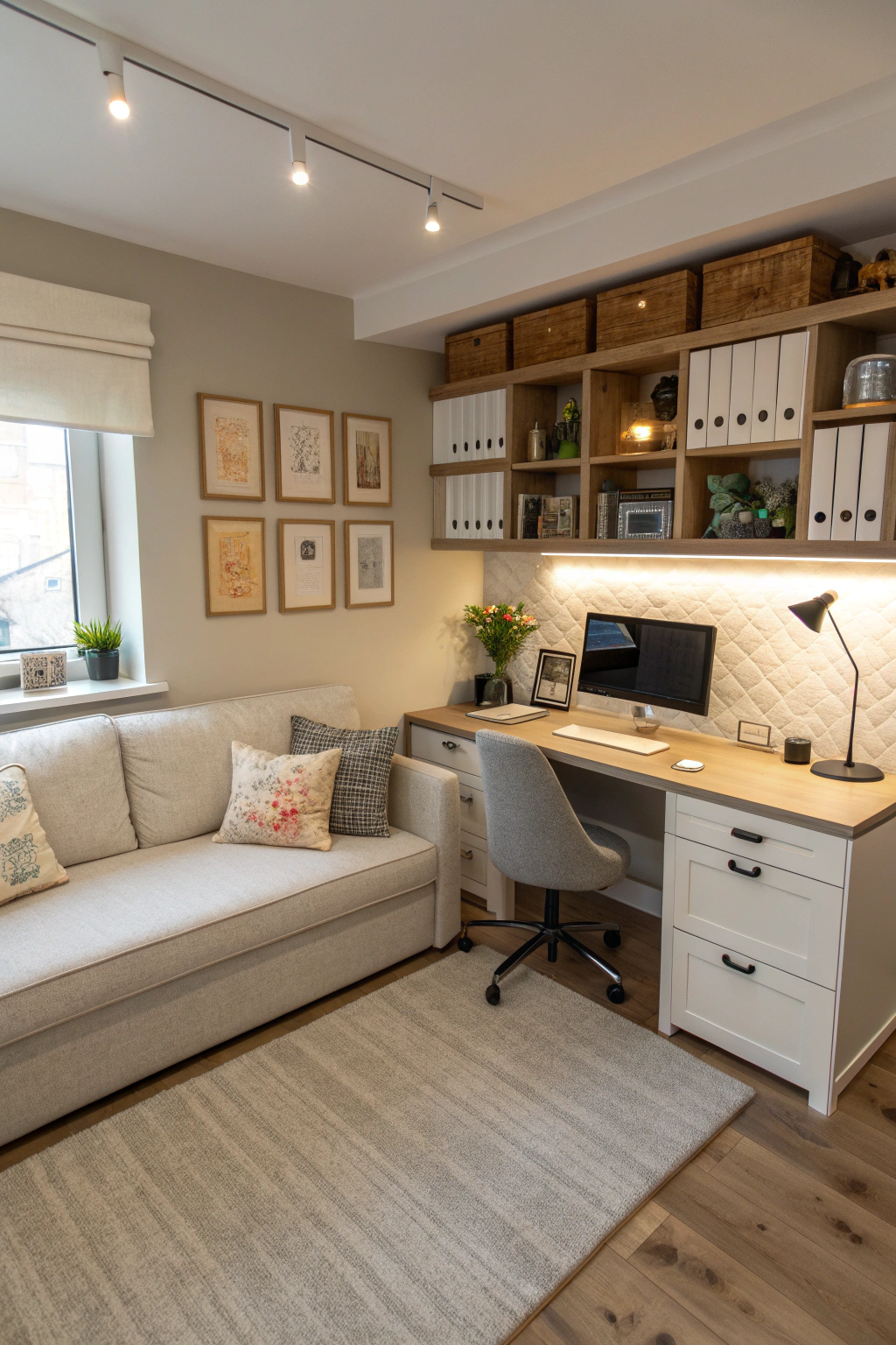 PinCreating a multifunctional home office that seamlessly blends with your living space can transform how you work and relax. Choose a corner near your L-shaped sofa for an efficient desk setup. Utilize stylish storage solutions to keep your workspace organized while matching your decor. Incorporate task lighting and comfortable seating, ensuring both productivity and comfort, allowing you to effortlessly switch between work and leisure.
