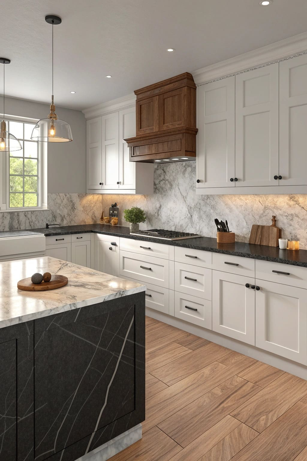 - Pendant lights: Hang over the island for focused task lighting and visual appeal.