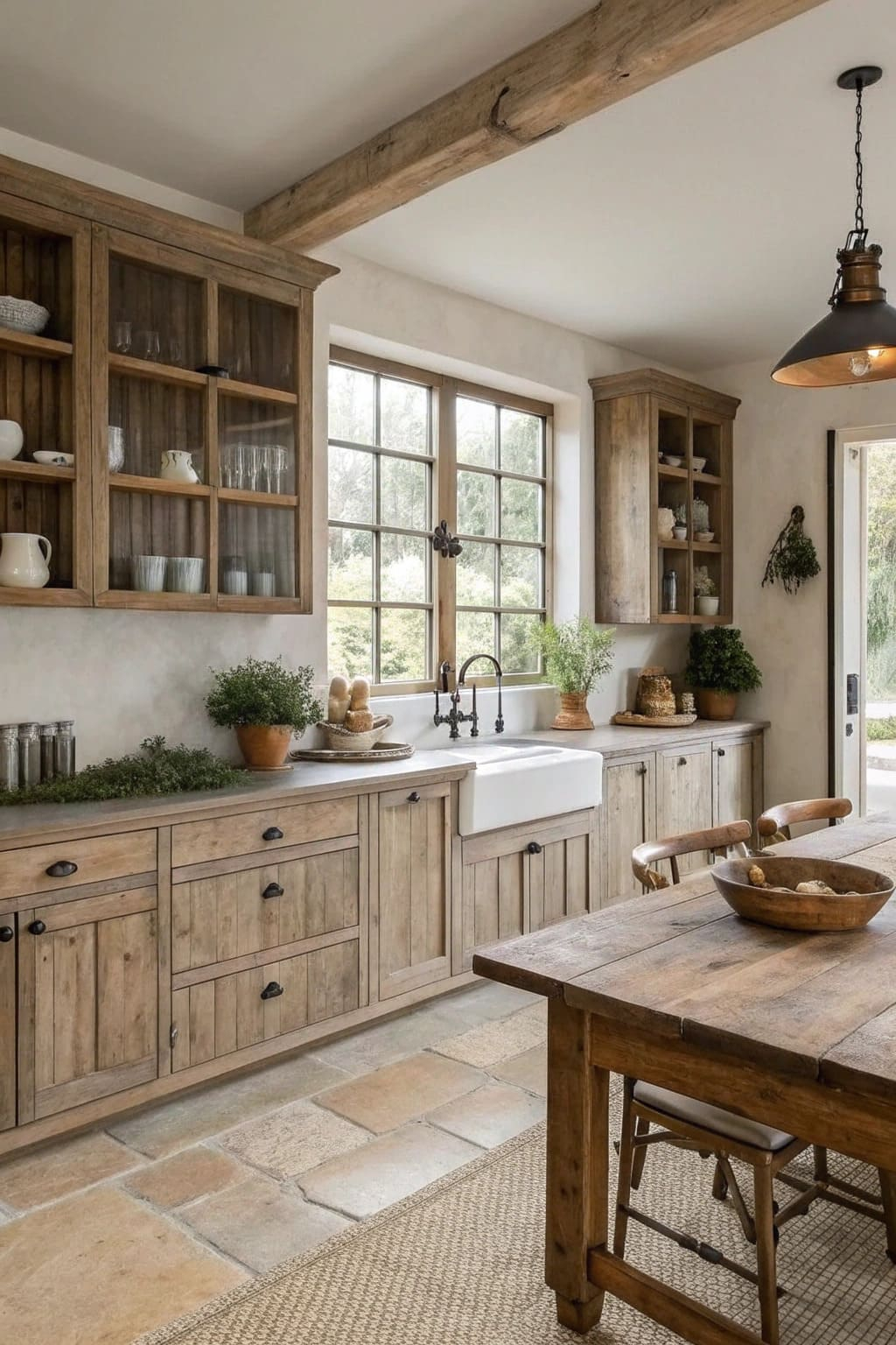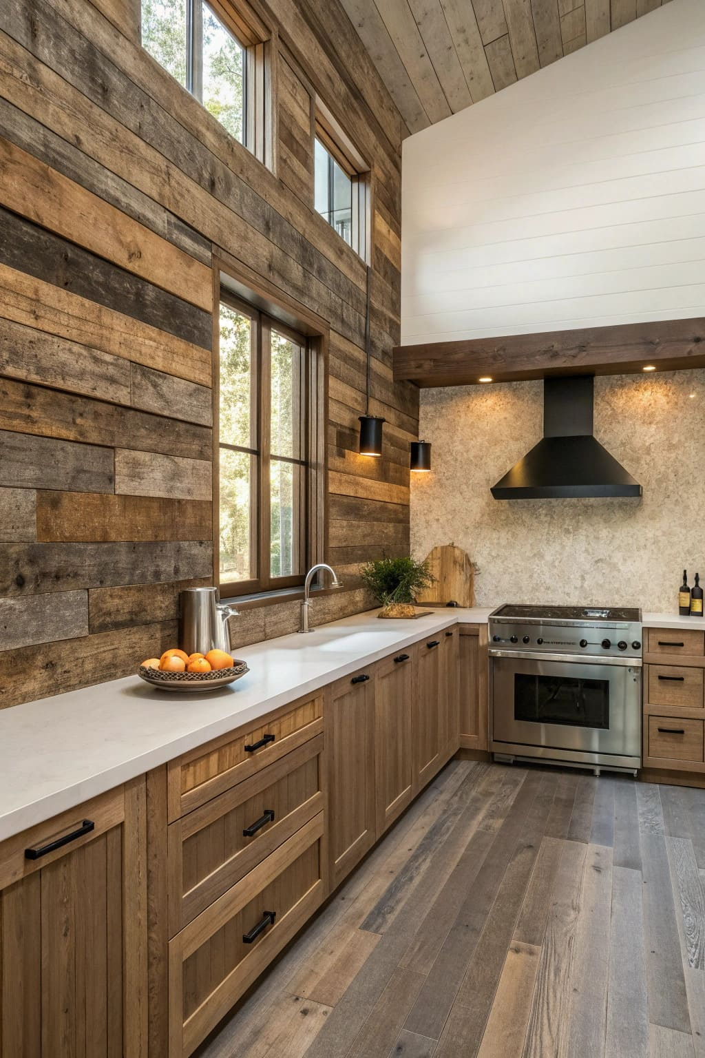 - Salvaged wood accents for warmth and character