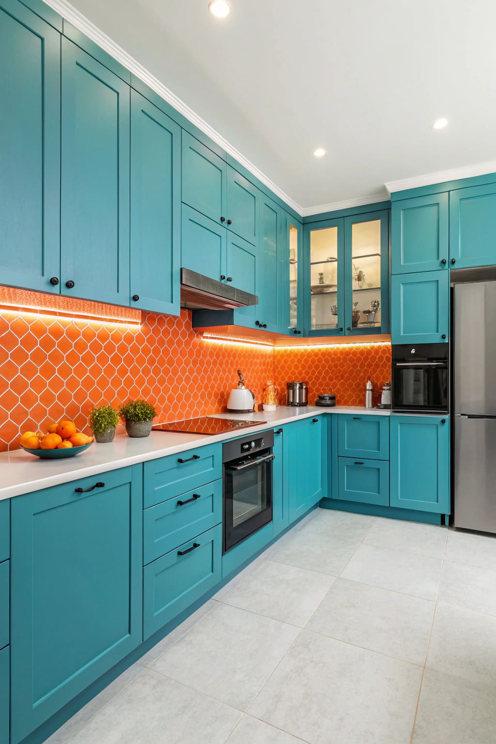 - Vibrant orange backsplash