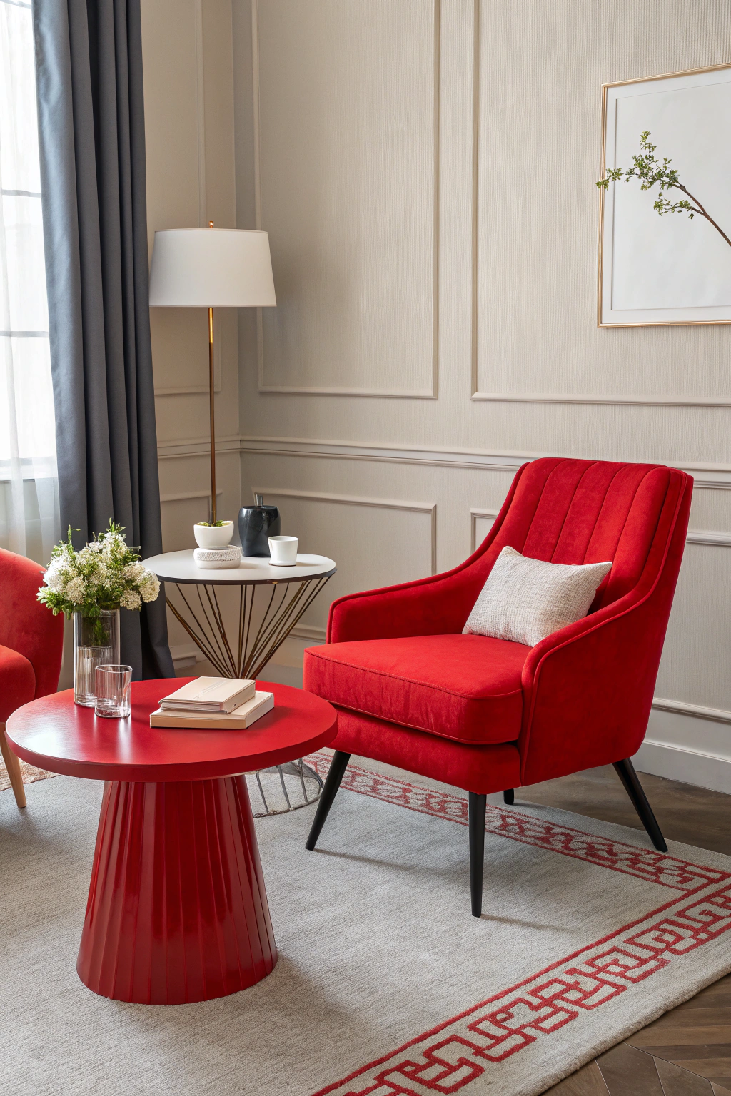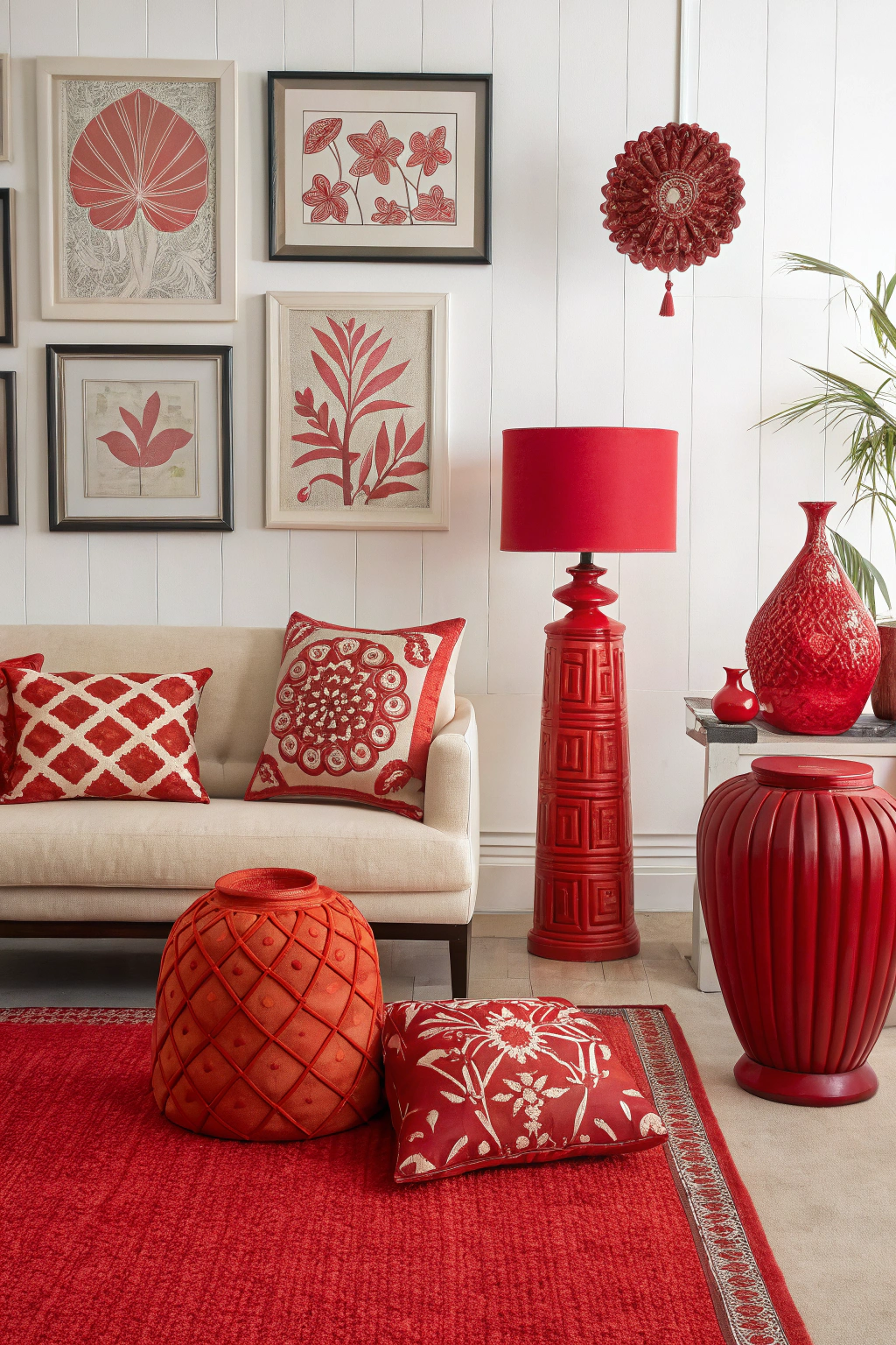 - Vibrant red accessories like vases or artwork for a pop of personality.