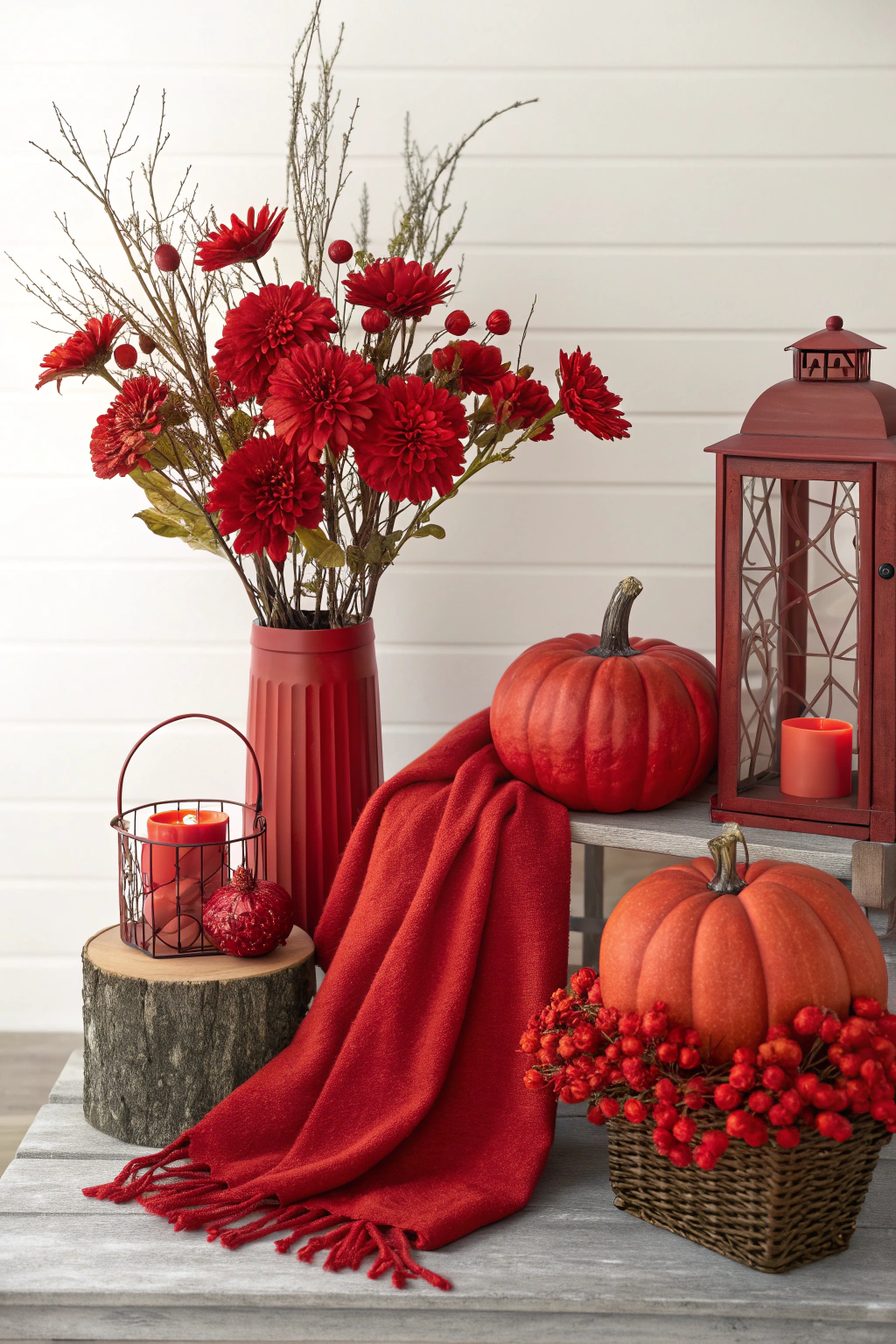 - Autumn-inspired red pumpkins as centerpieces