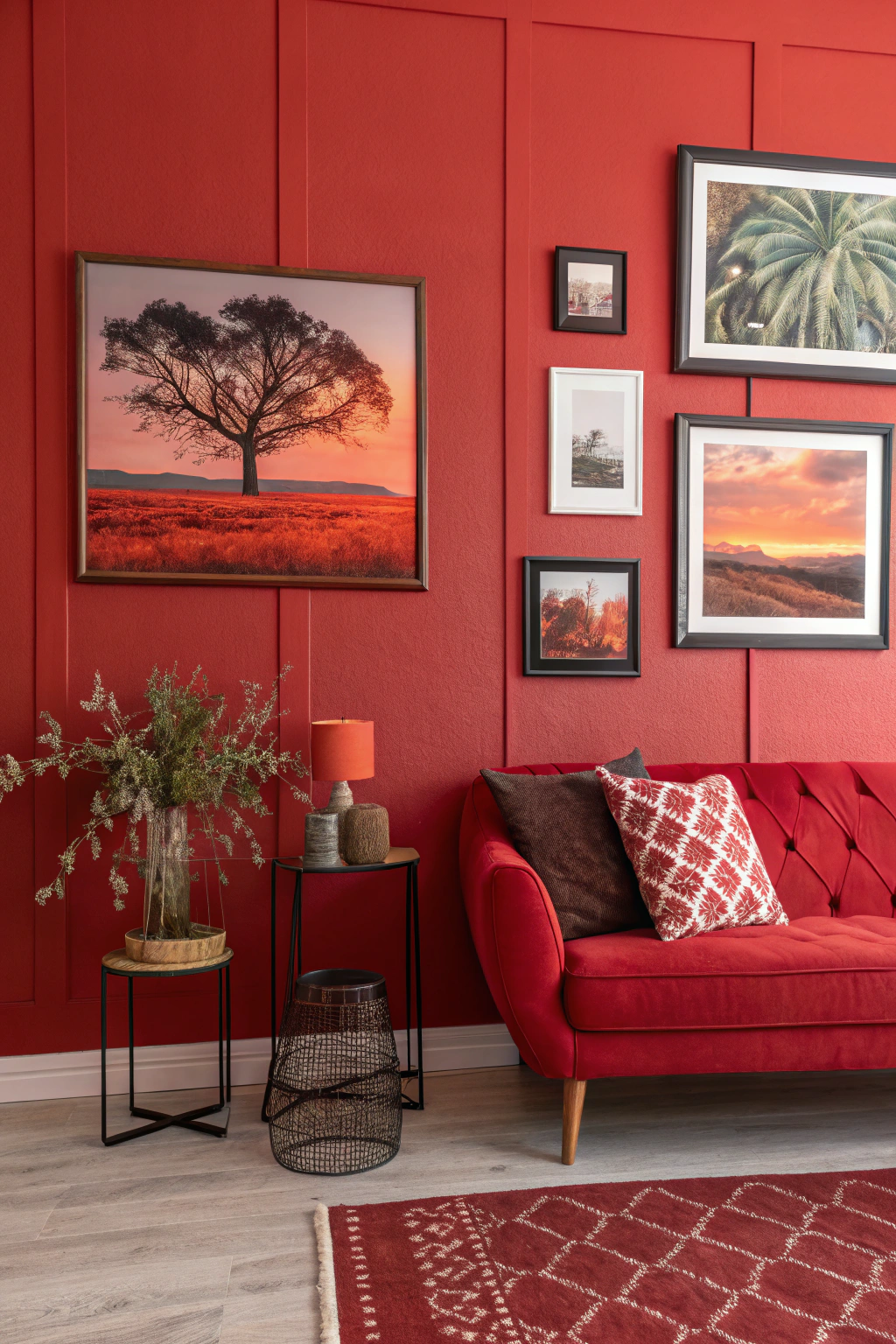- Striking red wall art to create focal points