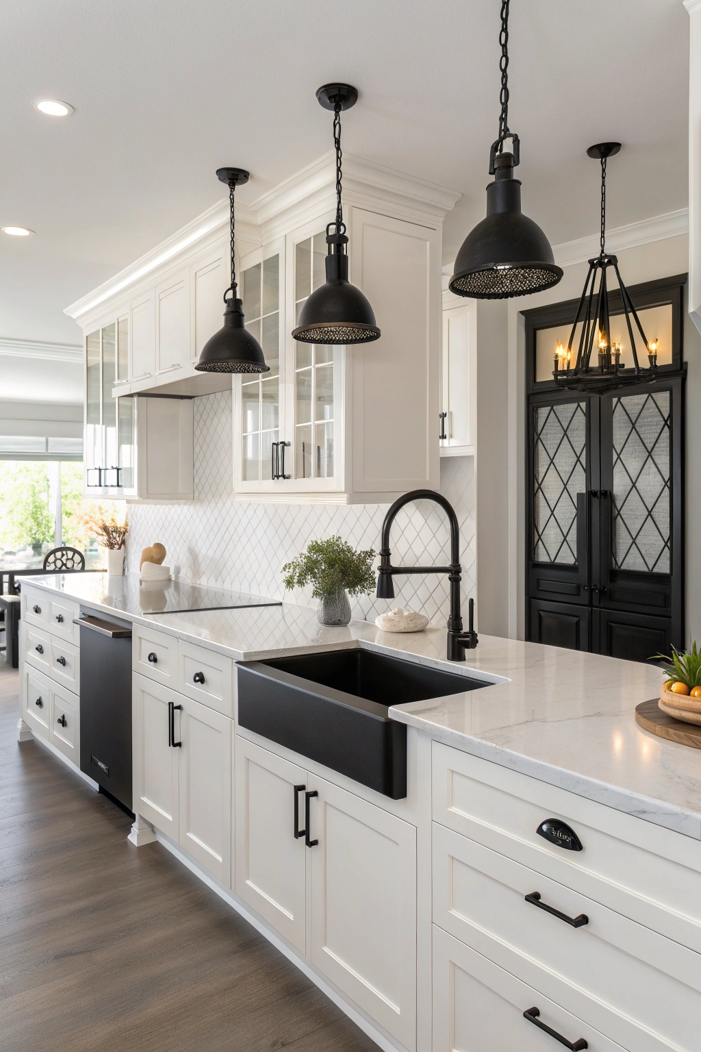 PinBold black fixtures can completely transform your white kitchen, adding a striking contrast that enhances both style and sophistication. You'll find these bold elements create a stunning focal point, unifying your design. Consider incorporating: