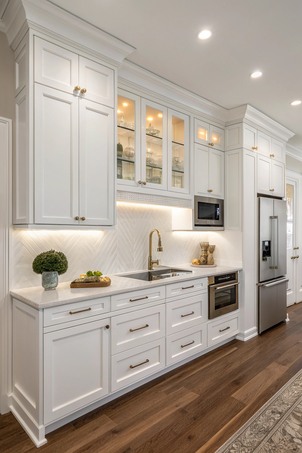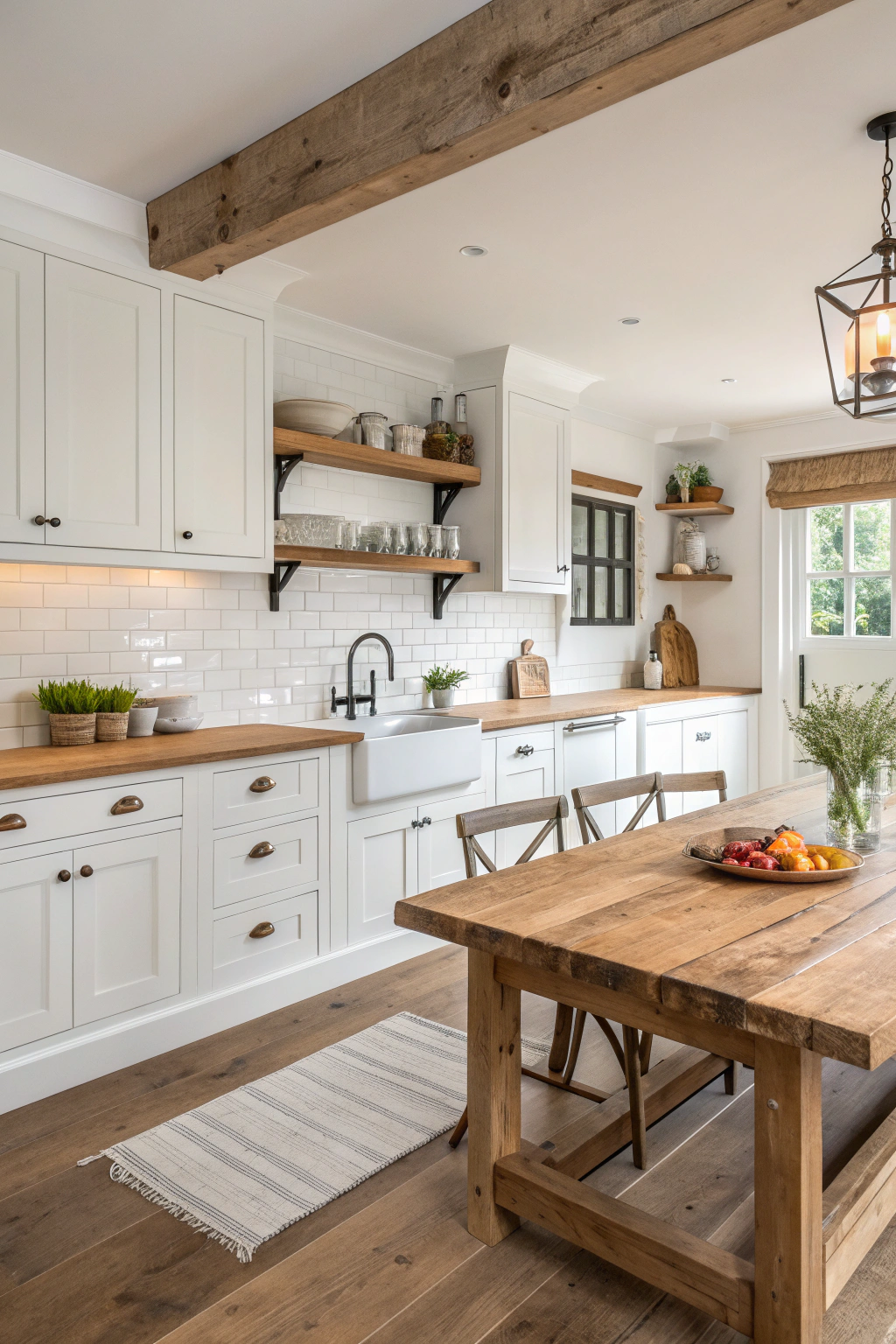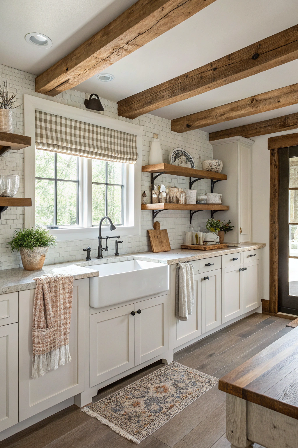 PinWhile modern elements often dominate kitchen designs, incorporating farmhouse style elements can create a warm and inviting atmosphere in your white kitchen. Consider adding rustic wooden beams or a farmhouse sink for an authentic touch. Use open shelving to display handmade pottery and vintage finds. Soft, neutral colors in textiles, like gingham or linen, can enhance the cozy vibe and complete the look.