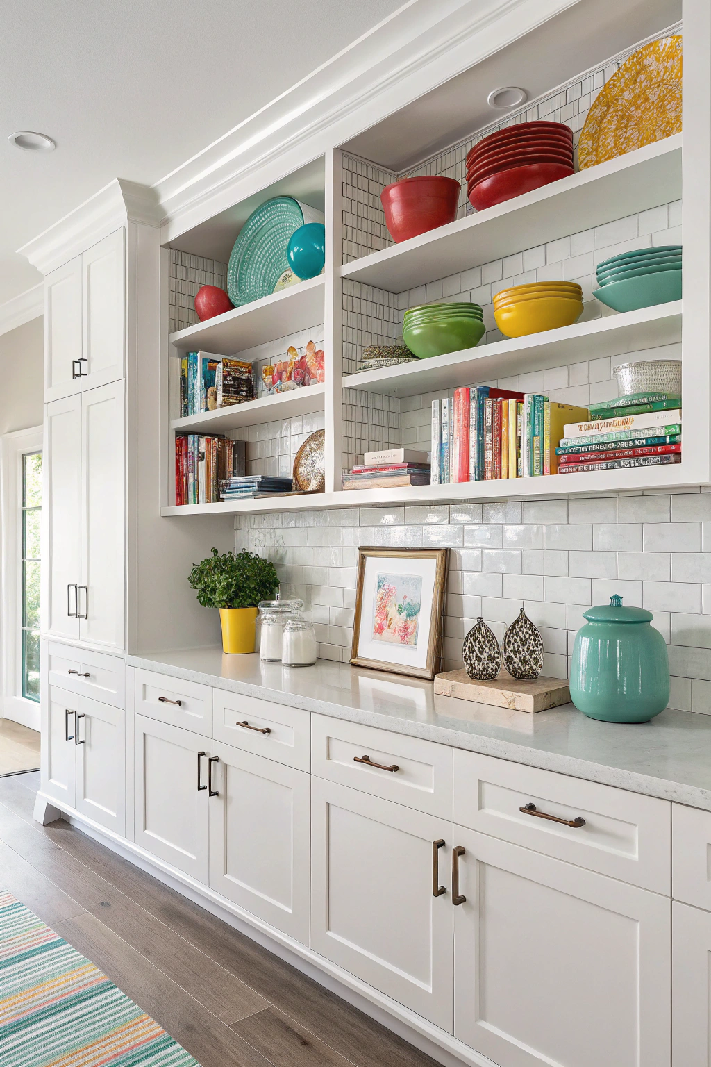 PinOpen shelving can transform your white kitchen into a stylish showcase. It creates a light and airy feel while giving you easy access to your favorite dishes and decor. Arrange colorful plates, creative jars, or chic cookbooks to add personality. By decluttering your cabinets, you'll enhance the open look, making your space appear larger and more inviting. Embrace this trend for a fresh, modern vibe.
