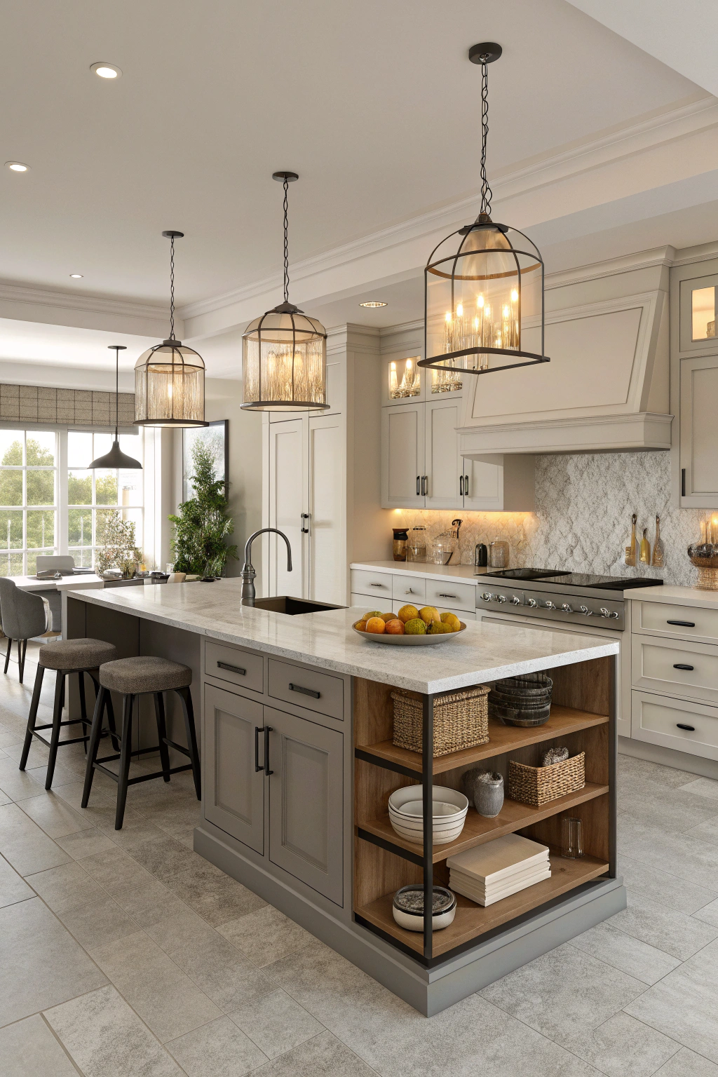 PinStatement pendant lighting can set the tone for your kitchen's atmosphere, and when combined with a multi-functional kitchen island, you'll enhance both style and practicality. These islands aren't just for preparation; they can serve various purposes, making your kitchen more efficient. Consider incorporating: