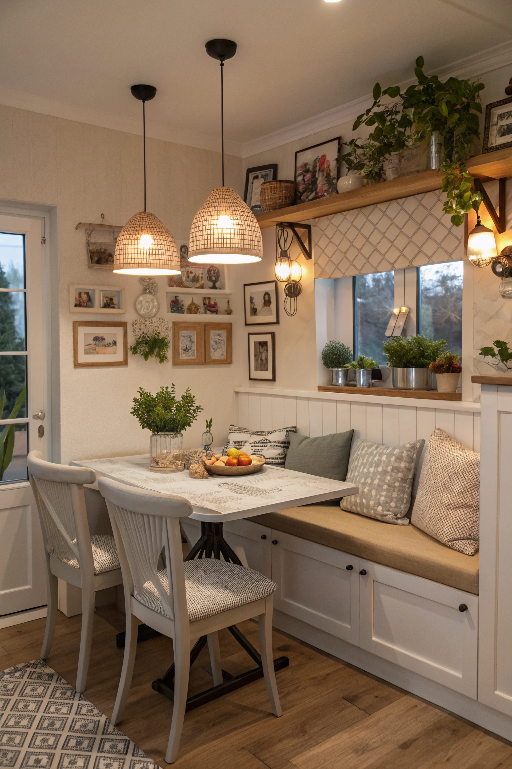 PinTransform your kitchen by creating a cozy eating nook that invites warmth and intimacy. Choose a charming table with comfortable chairs, and consider adding plush cushions for extra comfort. Soft lighting, like pendant lamps or candles, enhances the atmosphere. Surround your nook with plants or personal touches to make it feel inviting. Enjoy casual meals or morning coffee in this snug space.
