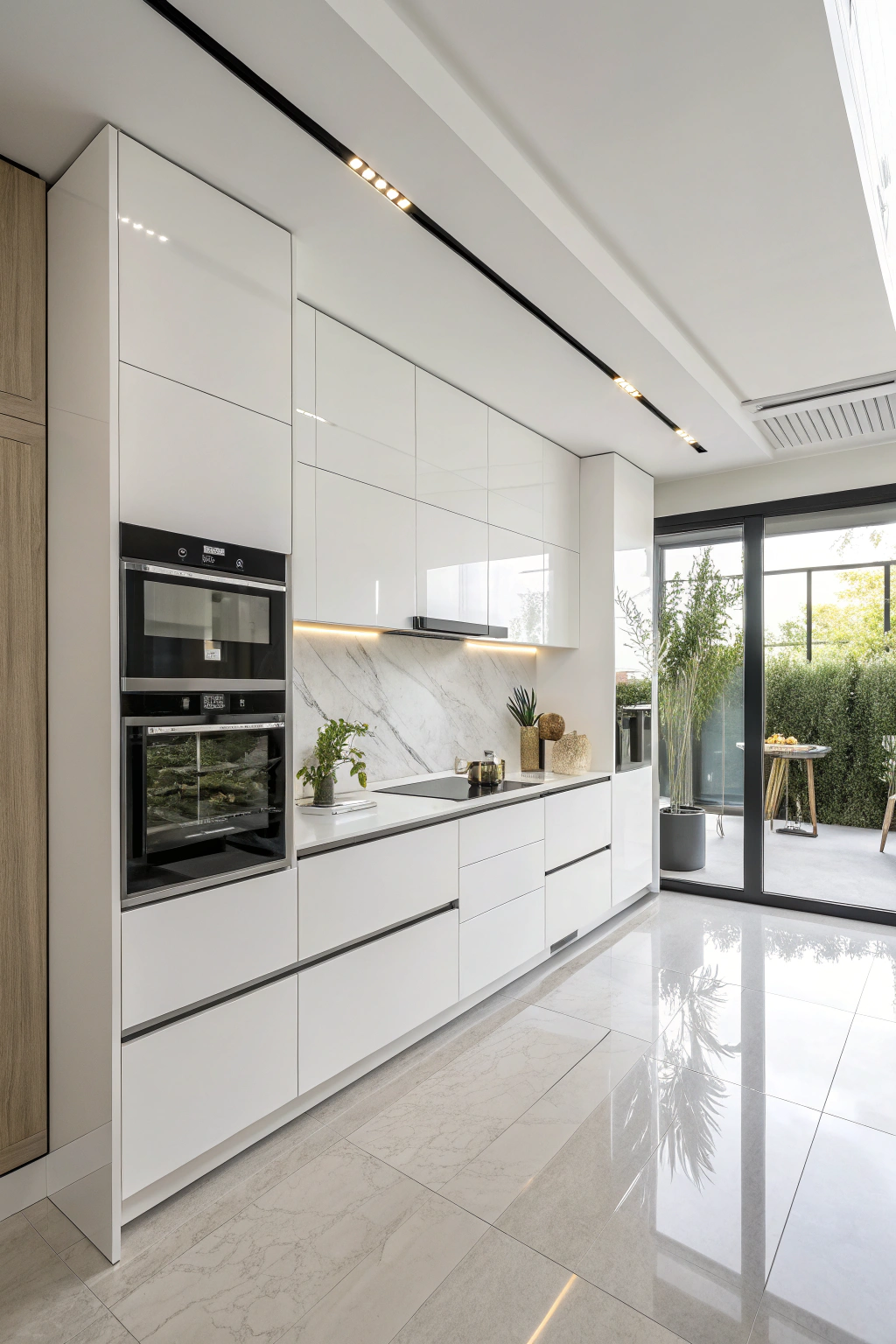 PinWhen you think of a modern kitchen, sleek white cabinetry often comes to mind. Its clean lines and minimalist design create an airy feel. You can choose high-gloss finishes or matte textures to match your style. Consider incorporating integrated handles for a seamless look. This design not only enhances aesthetics but also maximizes space, making it perfect for both cooking and entertaining.