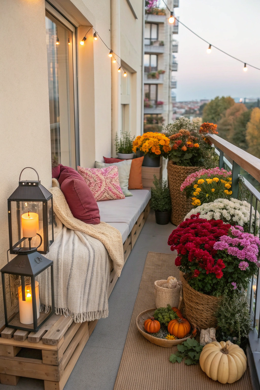 PinAs the seasons change, your small balcony can reflect those shifts with some simple seasonal decor. In spring, add colorful flowers and light fabrics; summer calls for vibrant cushions and outdoor lanterns. For autumn, consider pumpkins and warm-toned throws, while winter invites cozy blankets and twinkling lights. These touches will create a welcoming atmosphere that celebrates each season beautifully.