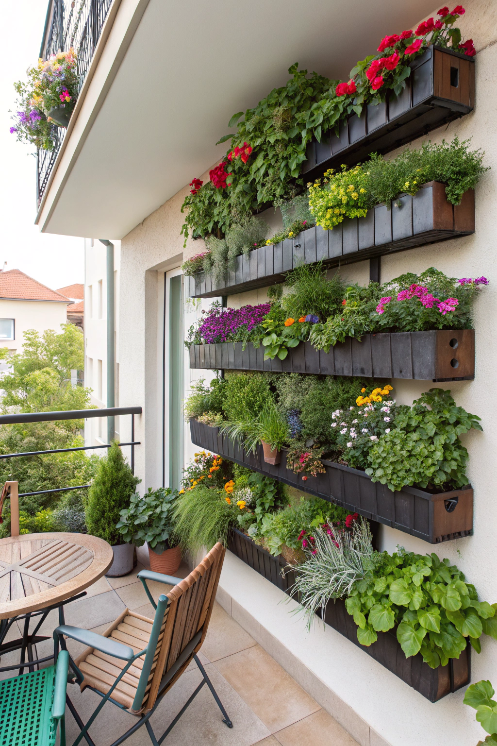 PinIf you're looking to liven up your small balcony, consider incorporating a vertical garden. These gardens make the most of limited space, allowing you to showcase a variety of plants. You can use wall-mounted planters or cascading shelves to create a green oasis. Choose flowers, herbs, or succulents that thrive in your climate for an eye-catching and invigorating display.
